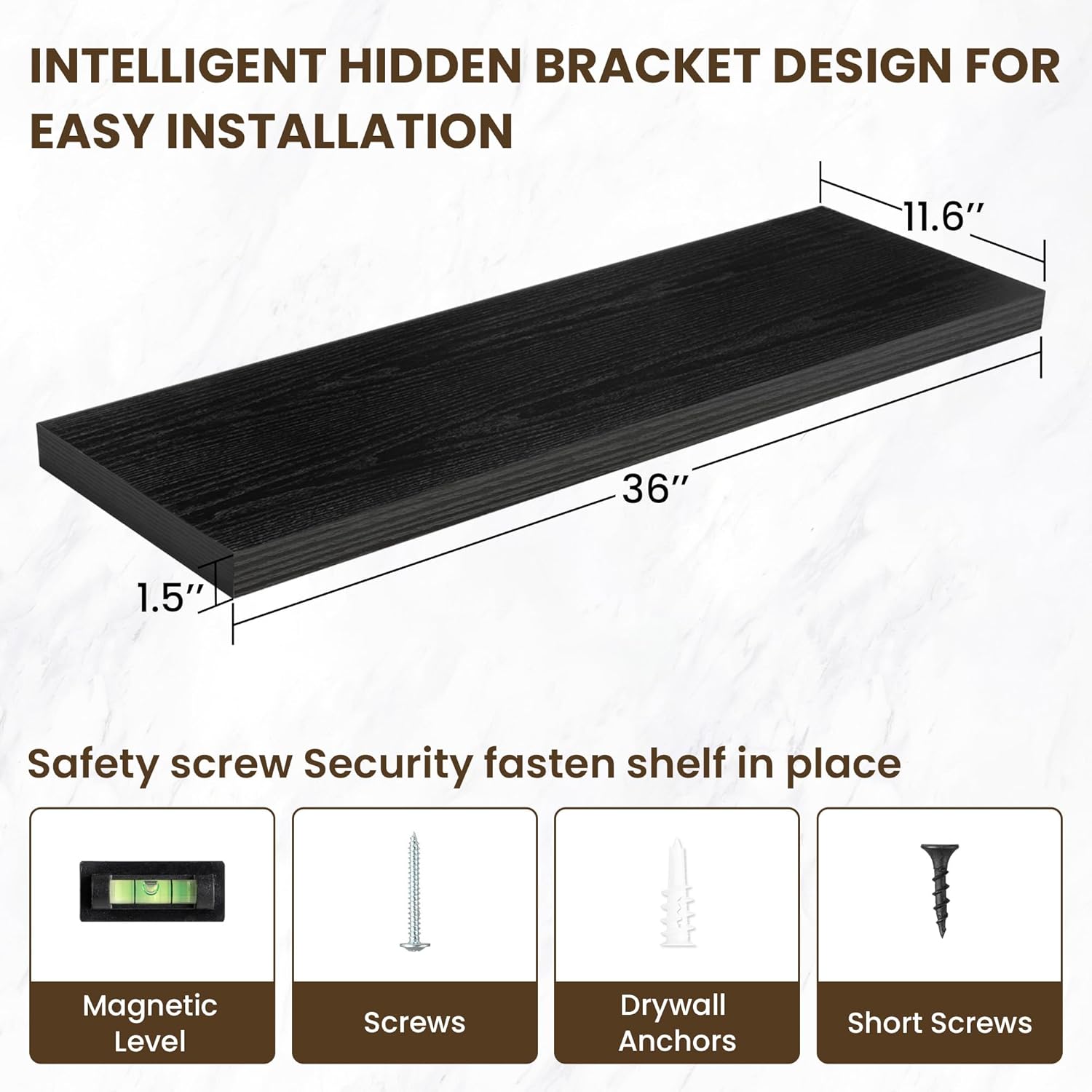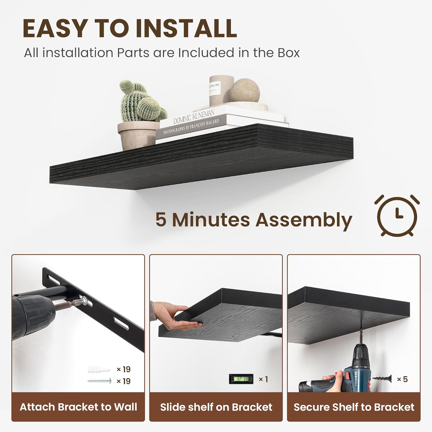 - 【Easy Installation】Designed with user convenience in mind, these shelves come with all necessary mounting hardware and clear instructions. You can have them up and ready to use in less than 5 minutes. Plus, our customer service is always ready to assist with any queries or concerns, ensuring a hassle-free experience