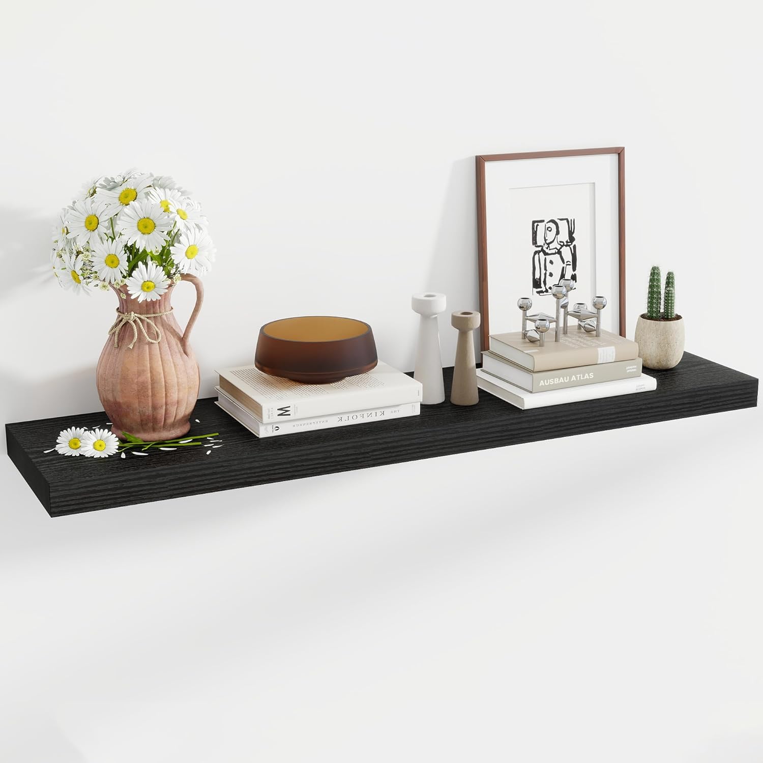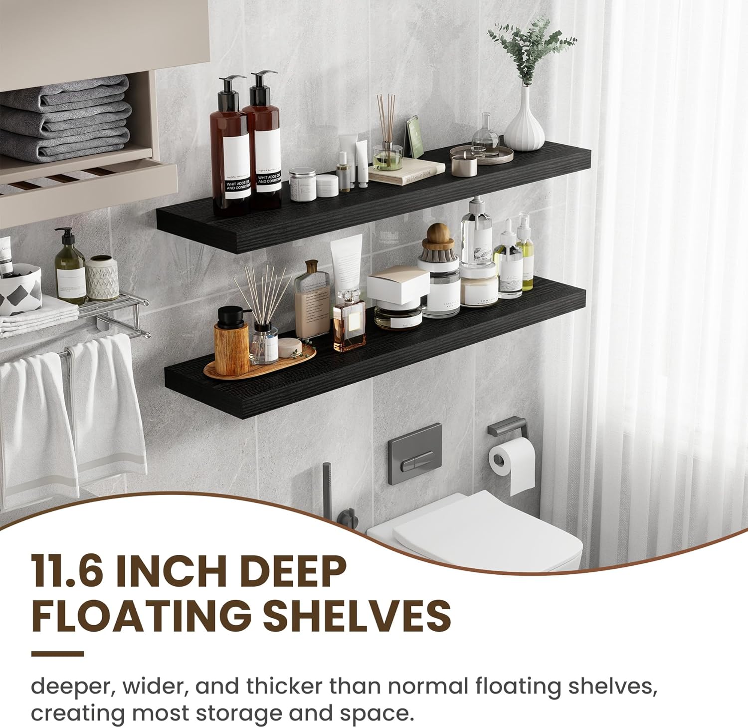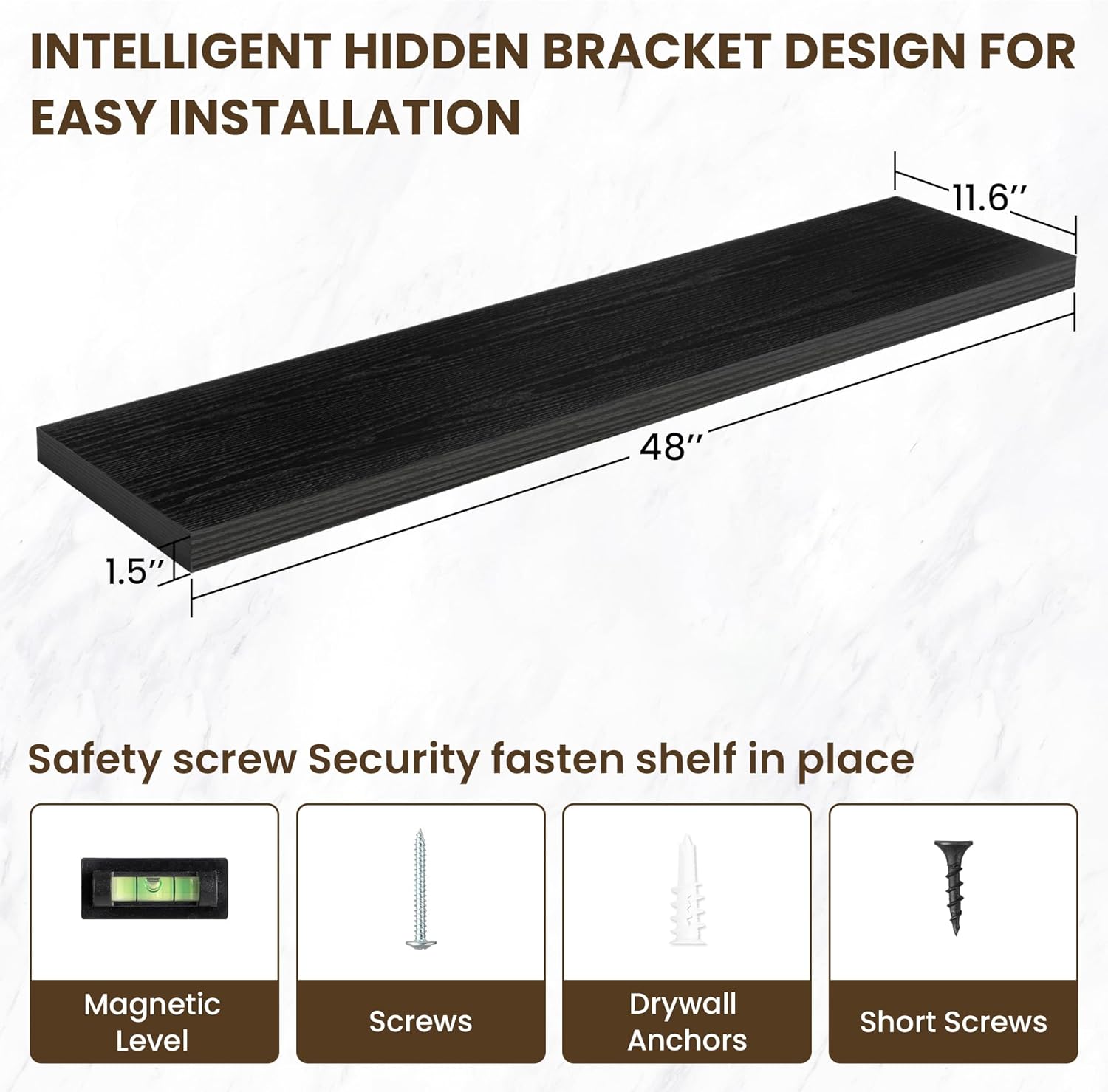 48 Inch Floating Shelves, 12 Inch Deep Floating Shelves for Wall, Floating Shelf with Invisible Brackets, Deep Shelves for Bathroom, Bedroom, Living Room, 1 Pack, Black