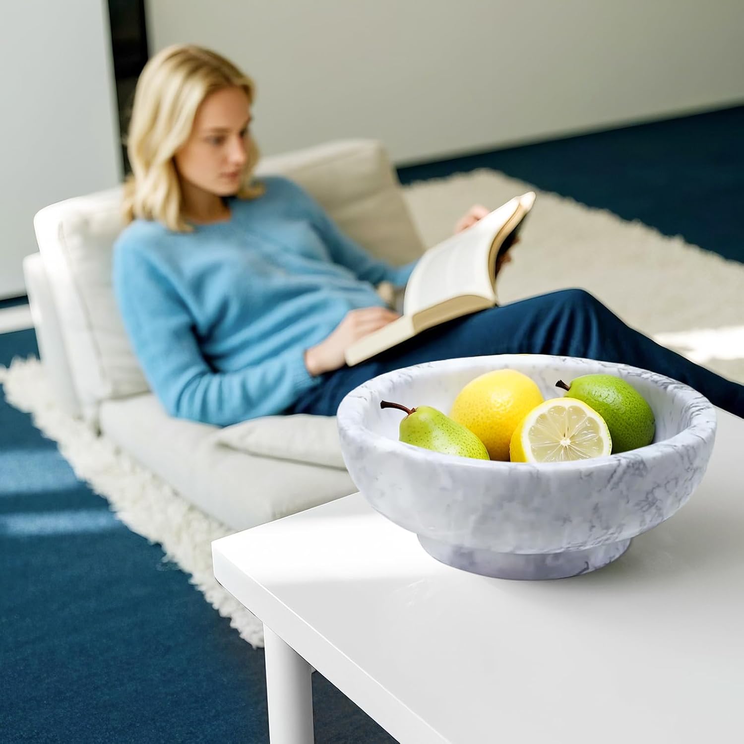 Natural White Marble Bowl with Grey Veins Large Decorative Bowl for Home Decor,Entryway, Fruit Display, Key Holder, Centerpiece (10.2" Diameter)