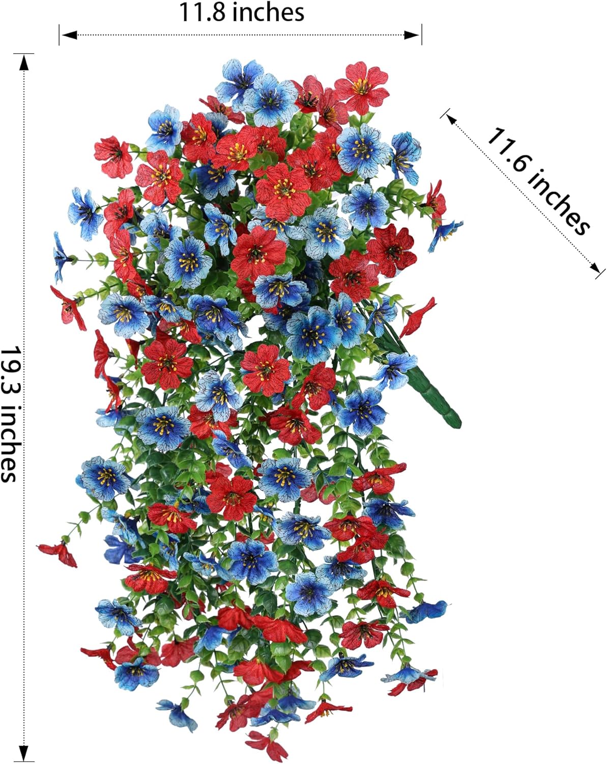 - Durable and UV Weather-Resistant: The fake hanging plants flowers are made of high quality silk cloth and plastic, UV and all weather resistant, waterproof and no fade in the sun and rainstorm.