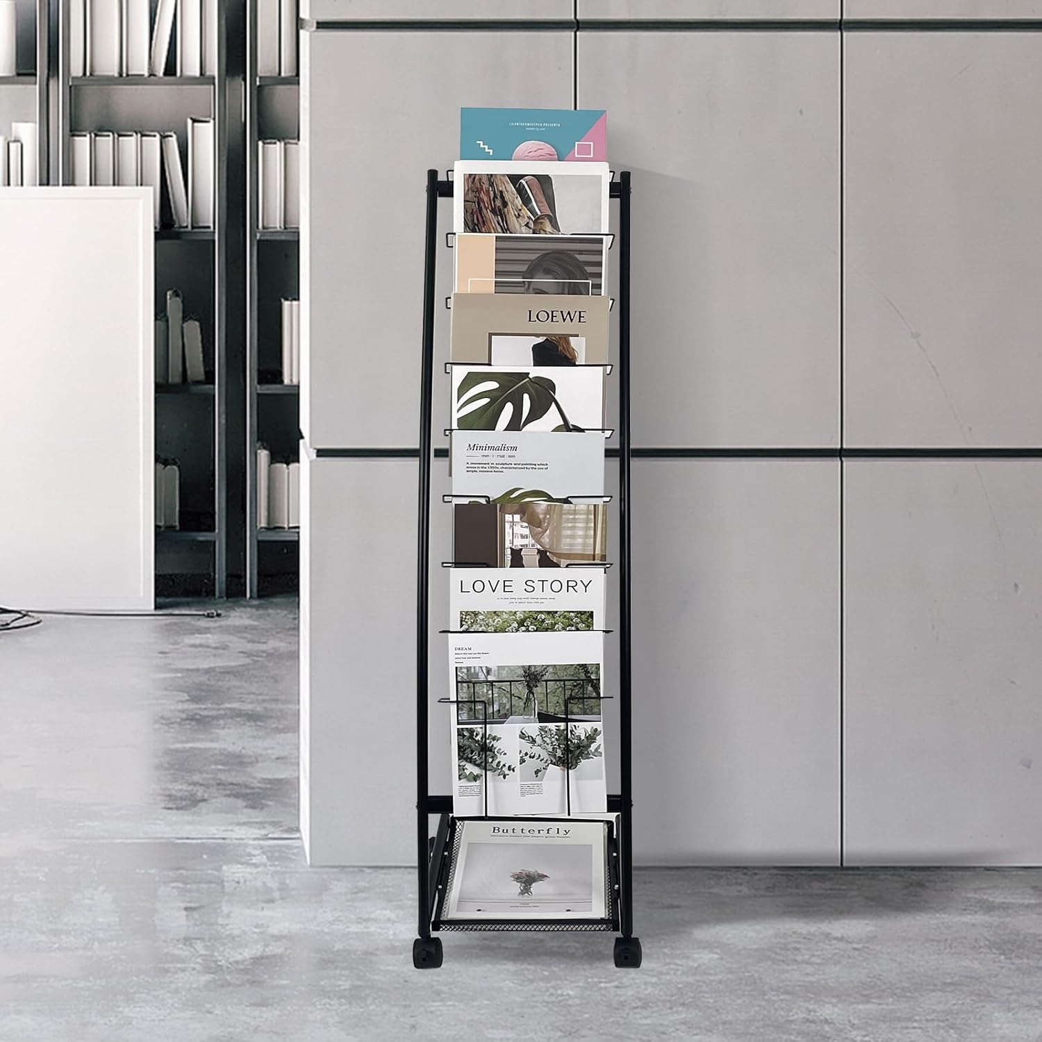 tongmo Magazine Rack: Floor-Standing with Wheels, 9-Tier Brochure Display Stand for Exhibitions, Office, and Any Organization Requiring Information Display