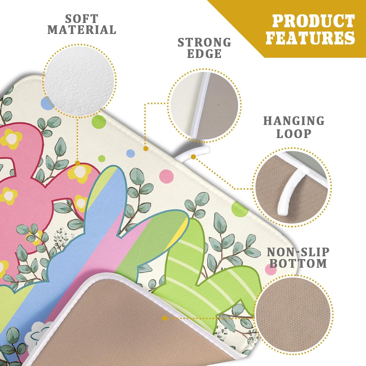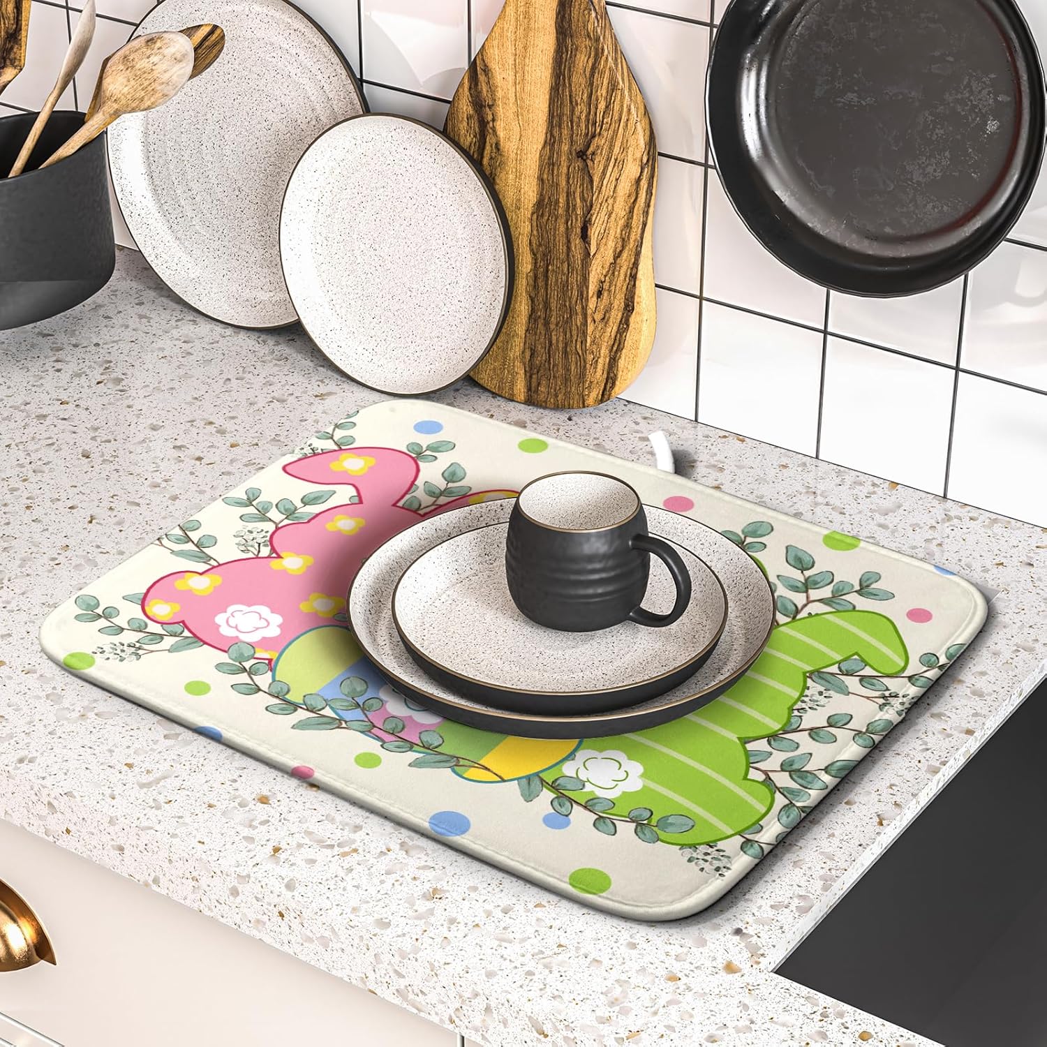 - 【Perfect Size】This Easter dish drying mat measures 16 x 18 Inch. Fits most kitchen countertops,while providing a smart,sharp look.