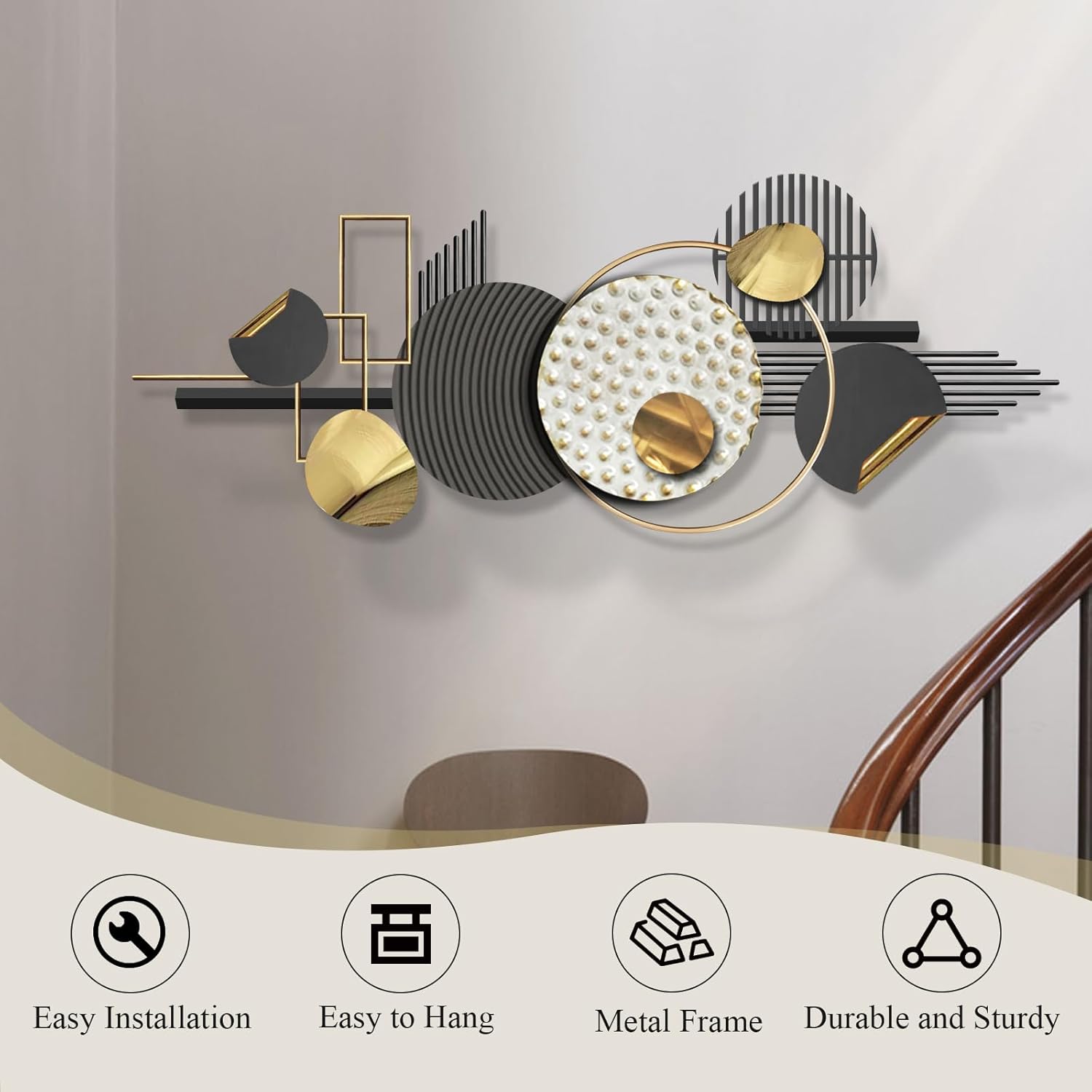 Lucky Monet Large Wall Decor for Living Room, Modern Metal Wall Art, 3D Textured Geometric Wall Sculpture 59"x24" Wall Hanging Decoration for Dinning Room Bedroom Entryway