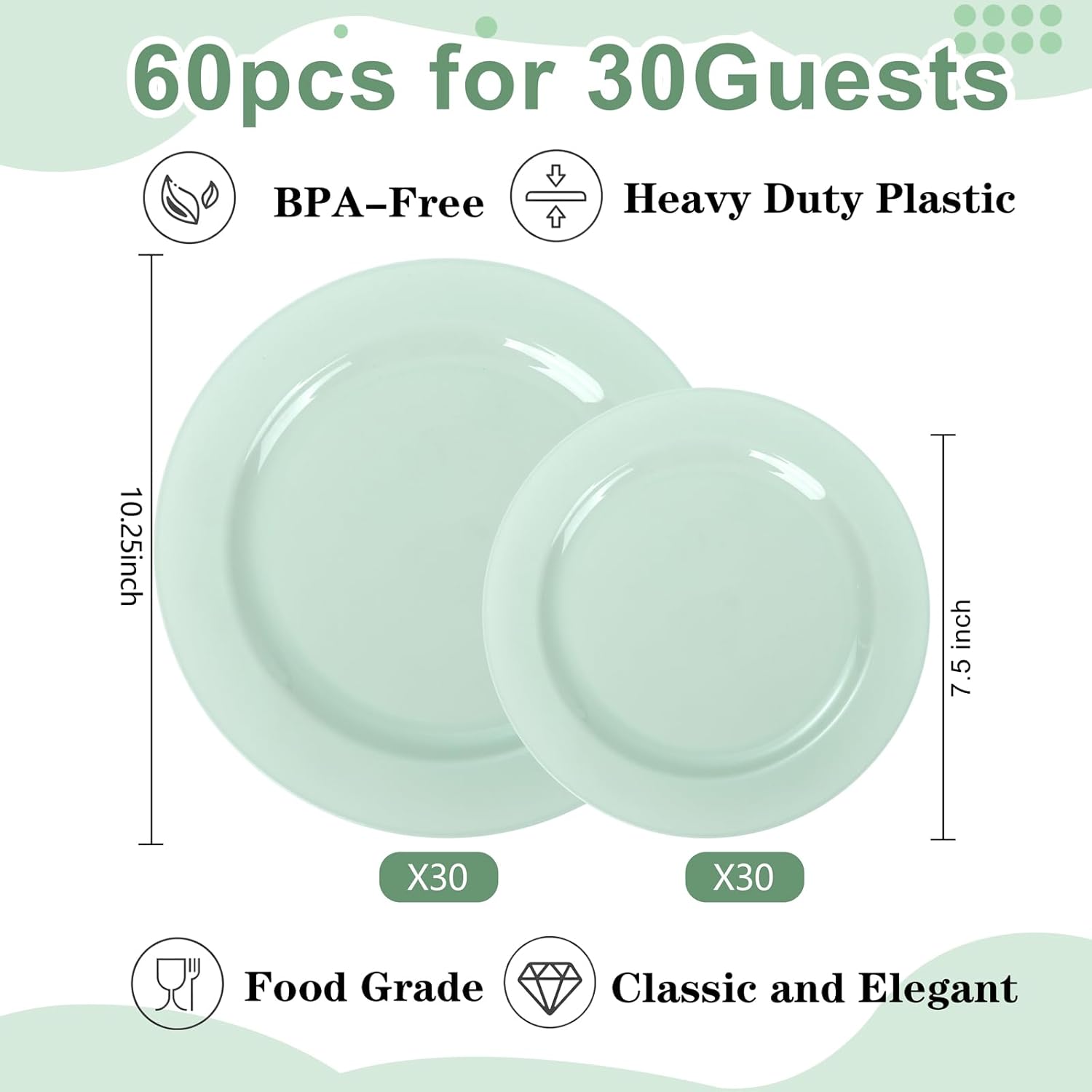 - APPROPRIATE AMOUNT: 30 Dinner Plates and 30 Dessert Plates are perfect for small gatherings. There is no need to think about the storage of the remaining sage green party plates. Choose the right product based on your needs. Reasonable planning of activity expenses.
