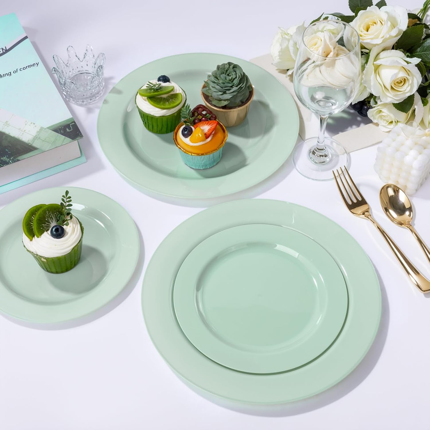 - REUSABLE&DISPOSABLE: Our sage green dessert plates and sage green dinner plates are unpatterned and unprinted. Wash the sage green plastic plates with water after use and they will look like new. smooth surfaces allow easy hand-washing for repeated use
