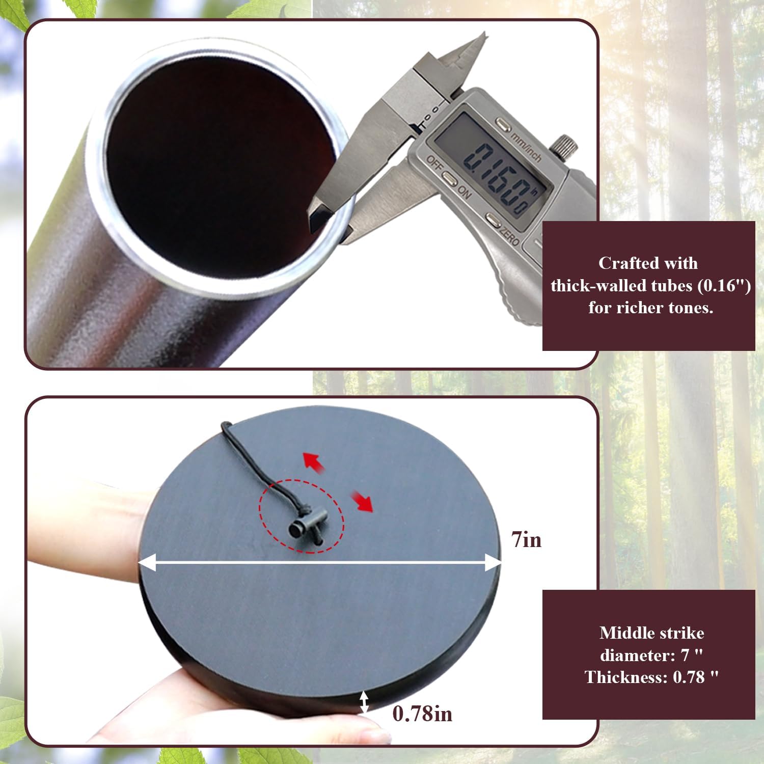 - Metal Wind Chimes - The extra large metal wind chime is made entirely of aluminum ,not only the six tubes,also the hook,the top part and the wind chimes pendulum,all durable anodized bronze finish.Thick tubing wall creates a longer lasting deep tone.Each tube is precision tuned to pentatonic scale.