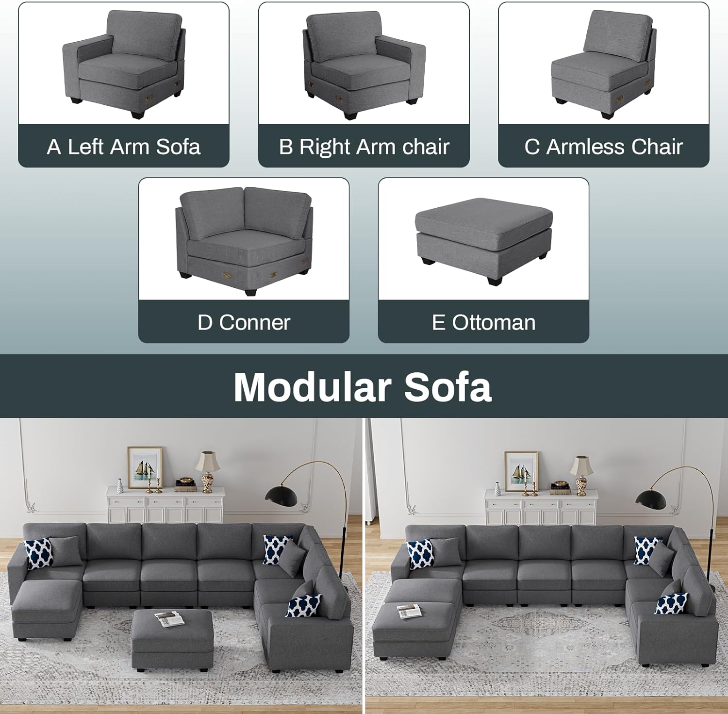 - 【Flexible Combination】The u shaped couch can rearrange the seats, you can adjust it as you like to create various shapes and layouts, whether it's combined into an L shaped sofa or a U shaped sofa, this sofa couch can fit your space perfectly. This flexibility not only brings more choices, but also saves your budget, by adding additional modules, you can easily expand the capacity and functionality of the sofa without having to replace the modular sofa completely.