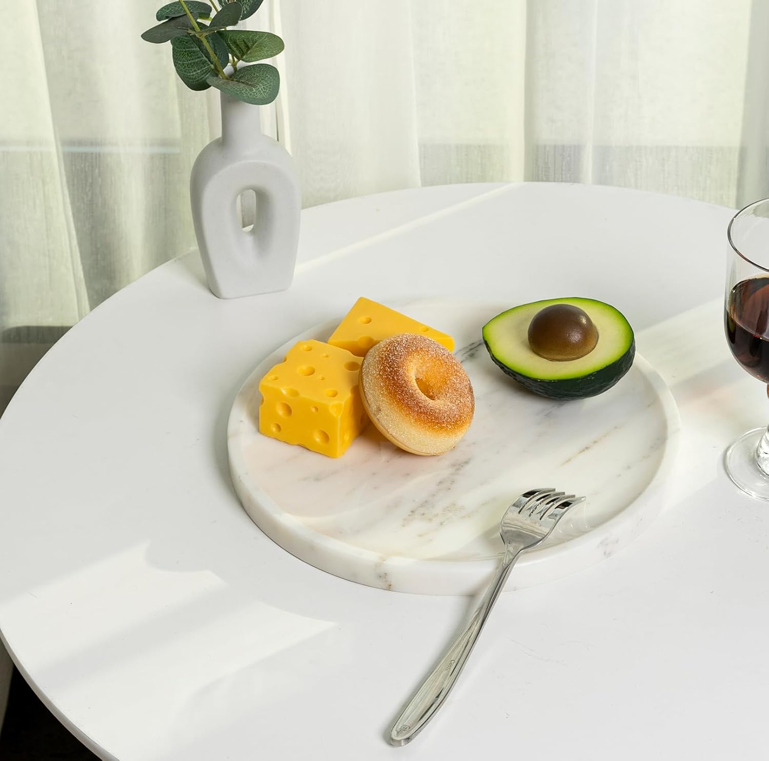 - Suitable Size: Our small round marble tray measures D9.8”x H0.7”. This bathroom counter tray fits bathroom washstands, kitchen counters, coffee tables, bedroom dressers, vanity tops, and bedside tables—ideal for organizing and enhancing your space