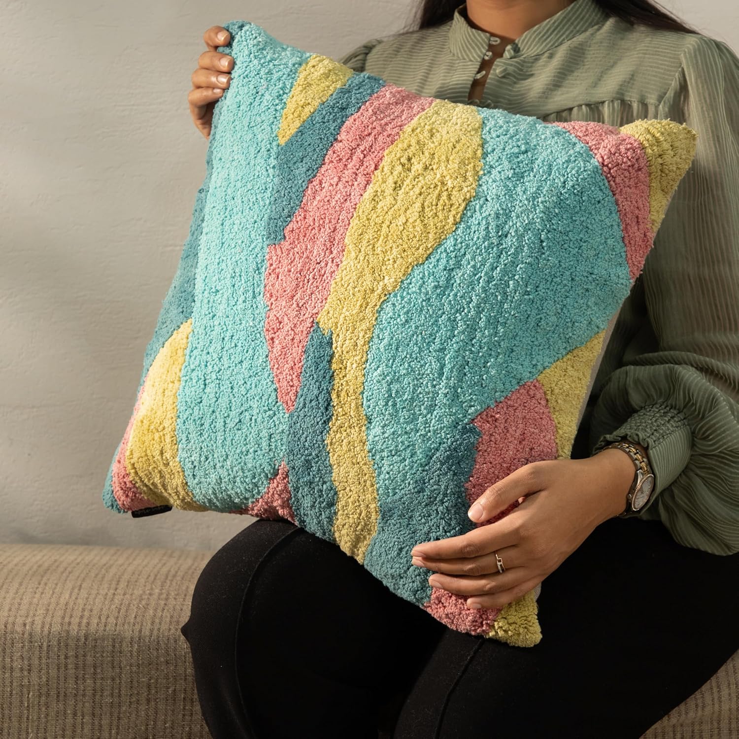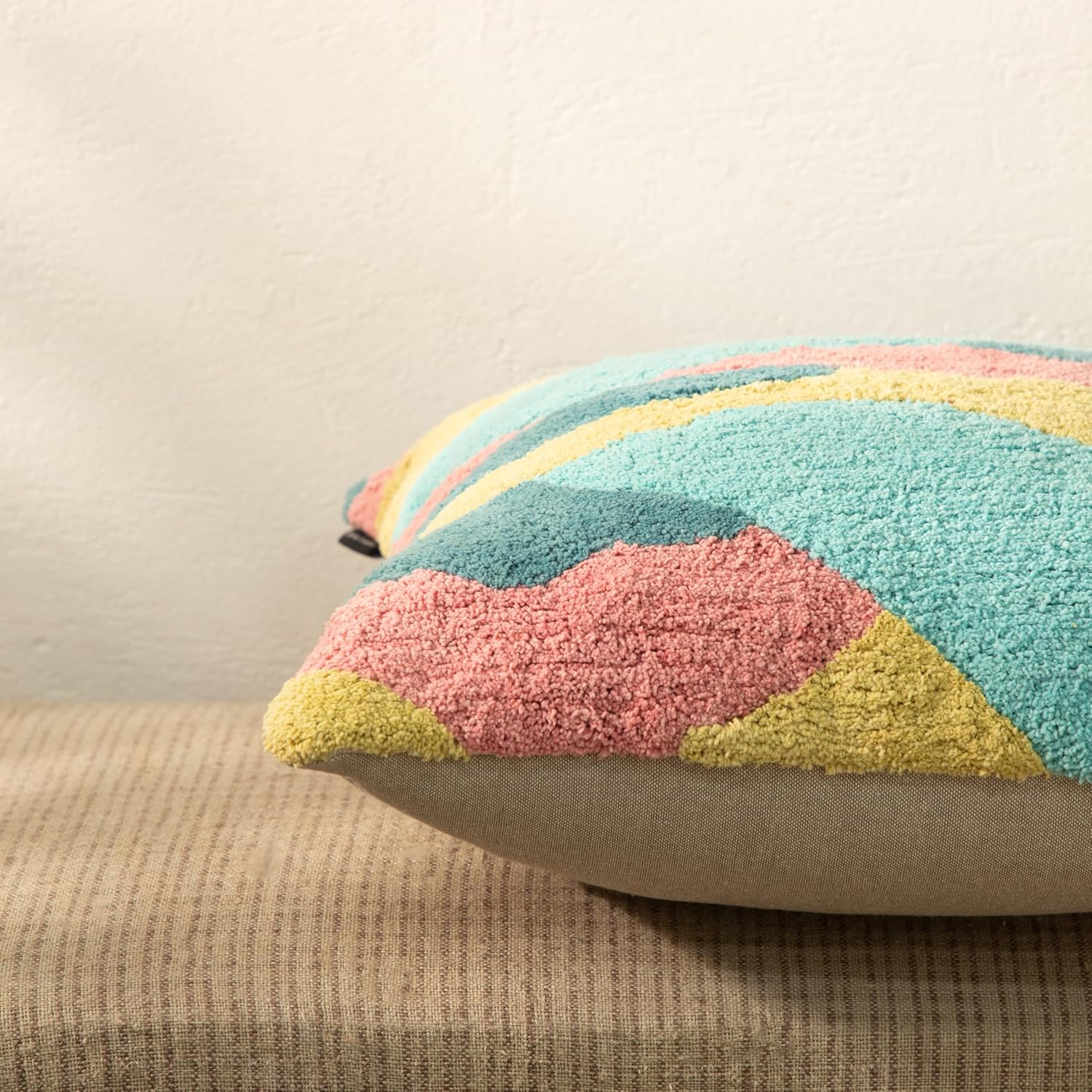 Tuffting Embroidery Decorative Throw Pillow Cover, 18 x 18 inches (Multi)