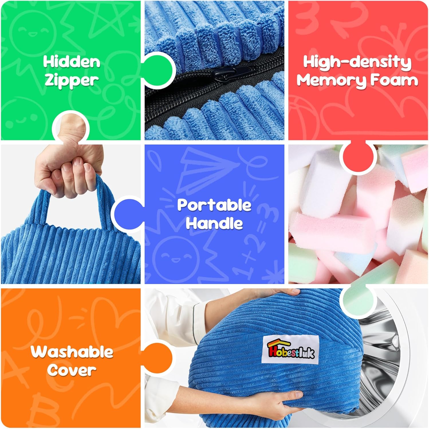 - Creative Design: Hobestluk bean bag chairs look like a tear drop with a wide base that narrows towards the top. There are six colors for you to choose in this design. Plus, our bean bag is made of comfy textured corduroy fabric and high-density memoy foam, which feels like you're sinking into a cloud.