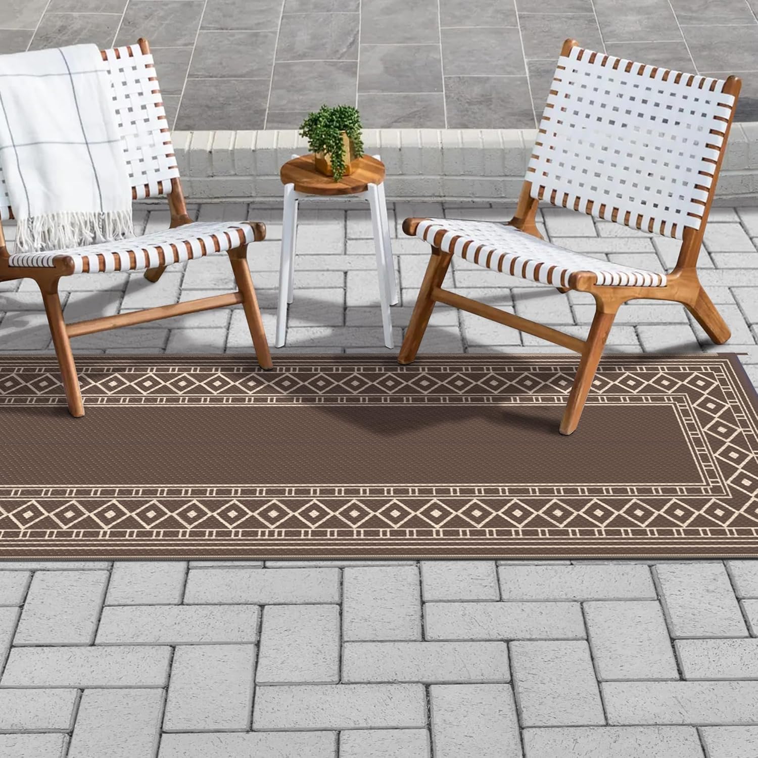 GENIMO Outdoor Rug Waterproof for Patio Decor, 2.5'x8' Foldable Reversible Plastic Straw Runner Rugs Carpet for Porch, Outside Area Mat for Rv, Deck, Picnic, Camper, Balcony, Coffee & Beige
