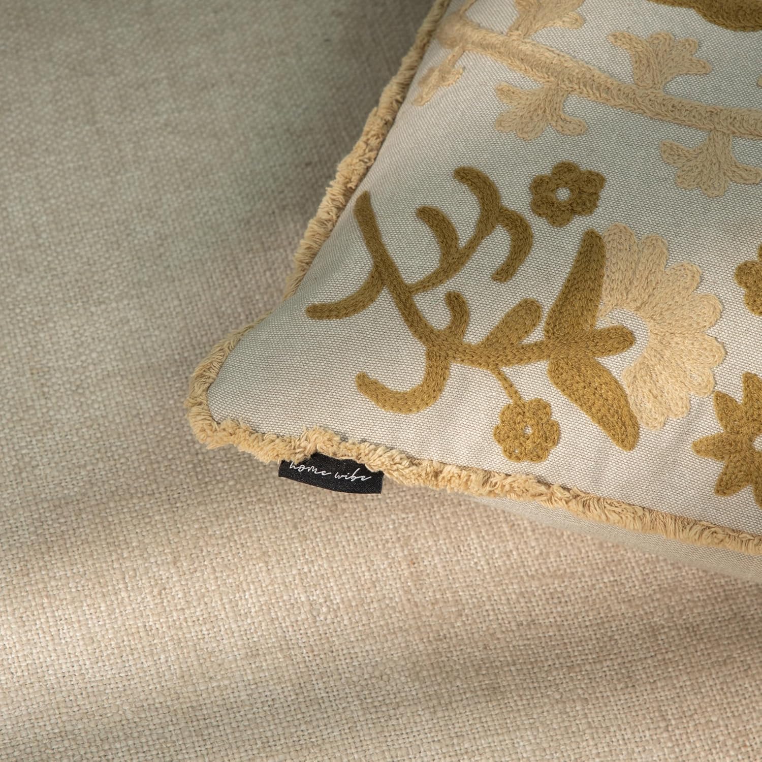 Embroidered Mandala Floral Vintage Indian Cotton Decorative Embroidery Throw Pillow Covers, Fringes Lace Cushion Cover, Pillow Case for Sofa Couch Bed Chair 18" x 18"