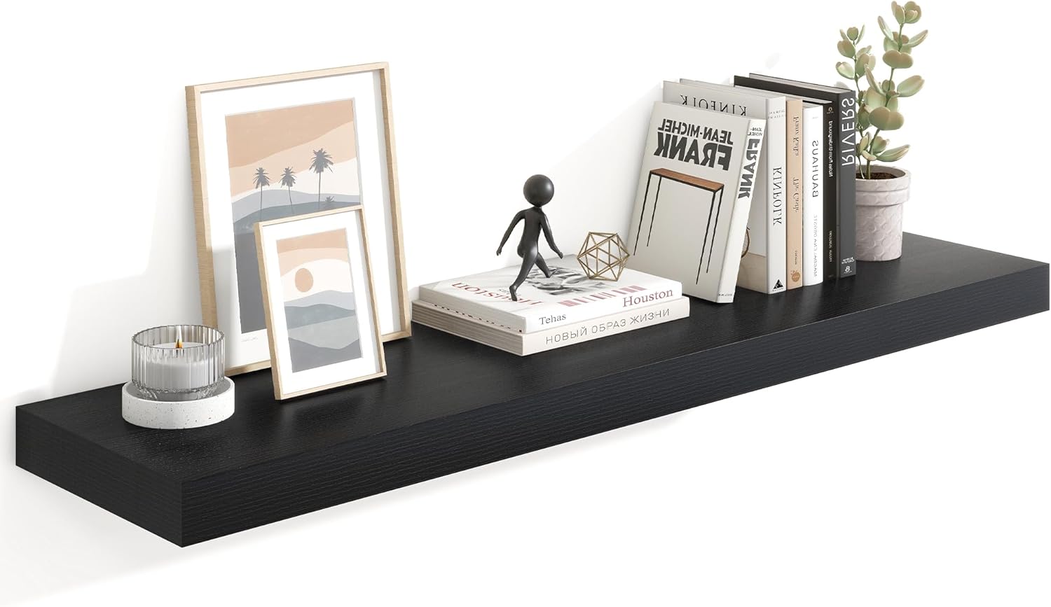 - 【Thickened and widened board】The size of each board is 47.3"W x 10.23"D x 1.8"H. Our wall-mounted floating shelves are made of high-quality medium-density fiberboard as the main material, combined with an integrated hidden metal bracket to ensure the stability and durability of the wall-mounted shelves. The shelf can bear up to 22 pounds.