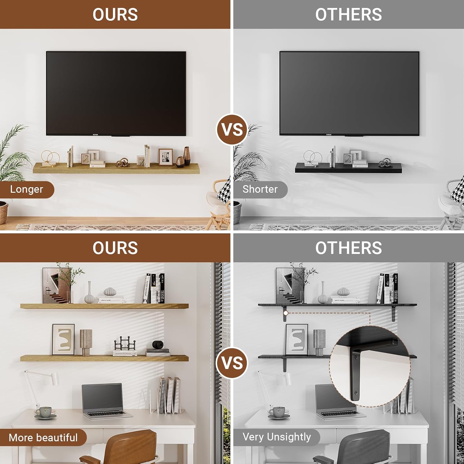 - 【Modern Rustic Look】Our 55 inch floating shelves for wall are made from durable engineered wood,which blends well with modern and rustic farmhouse wall decor alike.The 55 inch floating shelf is available in colors & sizes,perfect for storing books,plants,collectibles,etc..