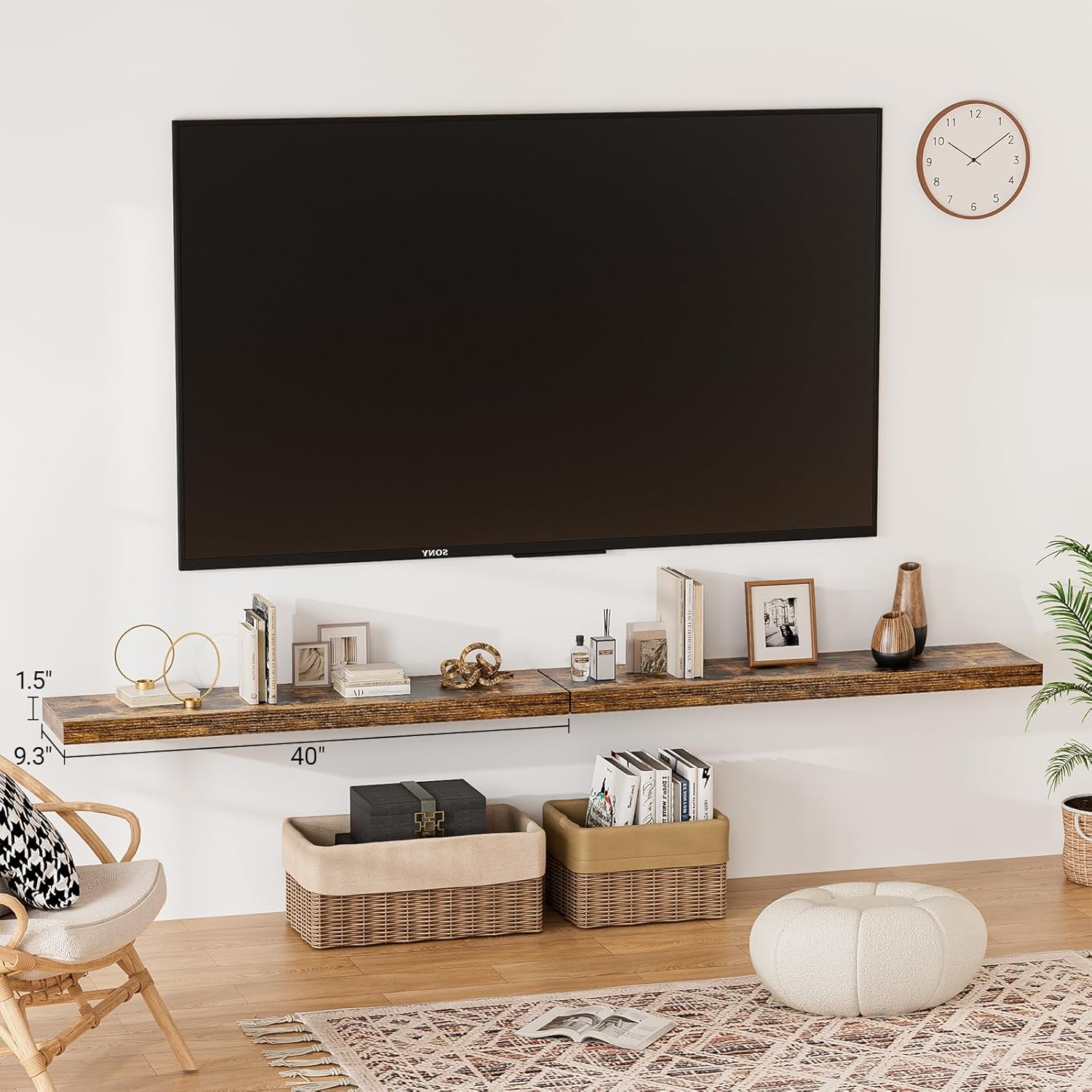 - 【Longer Design】Our pretty wall shelves are 40"W x 9.3"D x 1.5"H.Our brown floating shelves is longer than traditional designs and can hold more items.The rustic brown floating shelves optimize wall space,helping organize essentials without taking up floor space in your home.