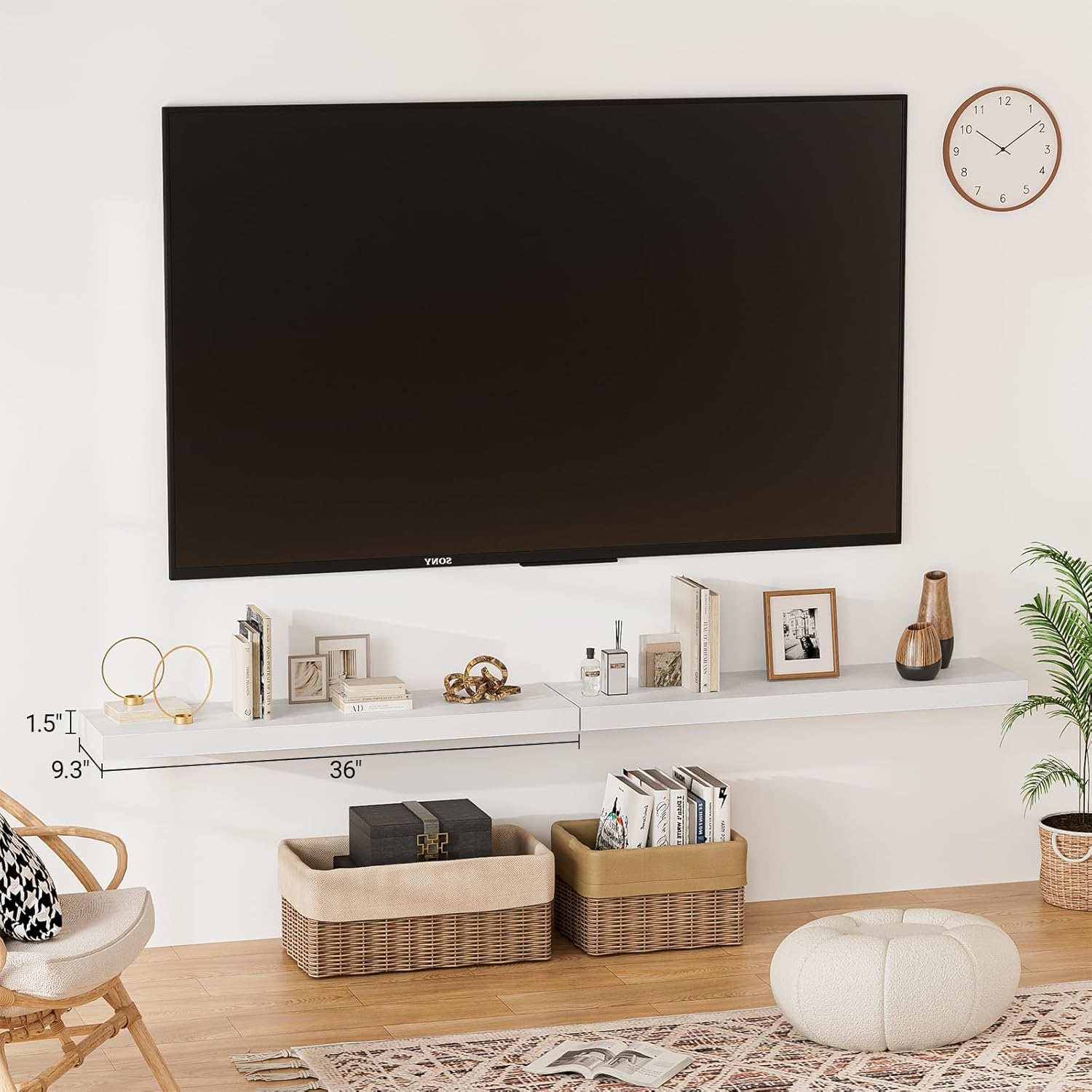 - 【Modern Rustic Look】Our 36 inch floating shelves for wall are made from durable engineered wood,which blends well with modern and rustic farmhouse wall decor alike.The 36” floating shelves white is available in colors & sizes,perfect for storing books,plants,collectibles,etc..
