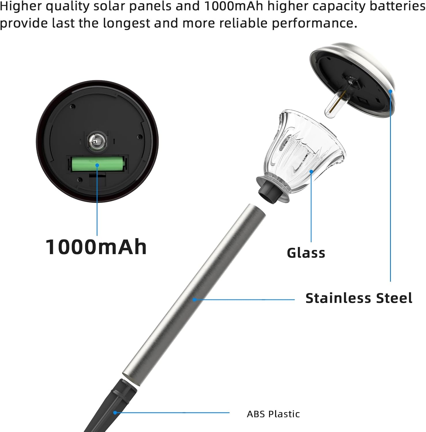 - Brushed Stainless Steel Durable Construction - Solar lights outdoor waterproof made from high-quality Stainless Steel, Glass materials hold up well against rain, snow, and hot sun. Designed for outdoor use tend to provide better durability and longevity, withstand outdoor conditions better than plastic.