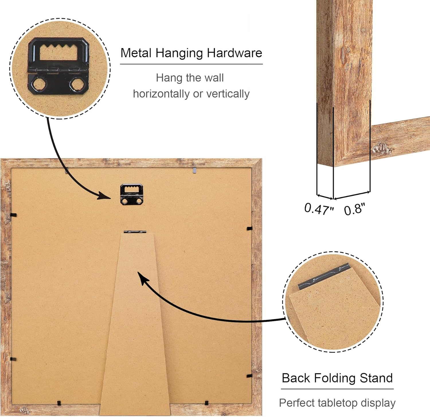 - Multiple Display:12 by 12 photo frames come with hanging hardware, which can be hung on the wall, or displayed on the tabletop through the stand
