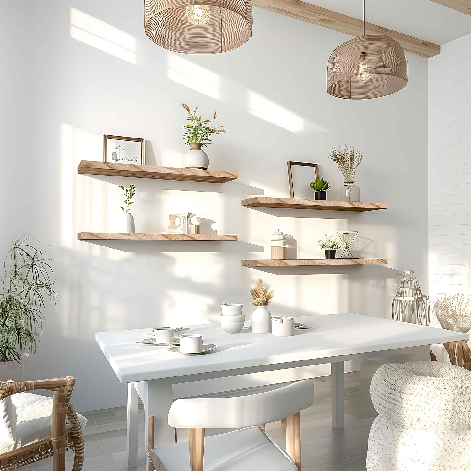 24 Inch Floating Shelves for Wall Rustic Light Wood Wall Shelves for Bedroom Set of 4