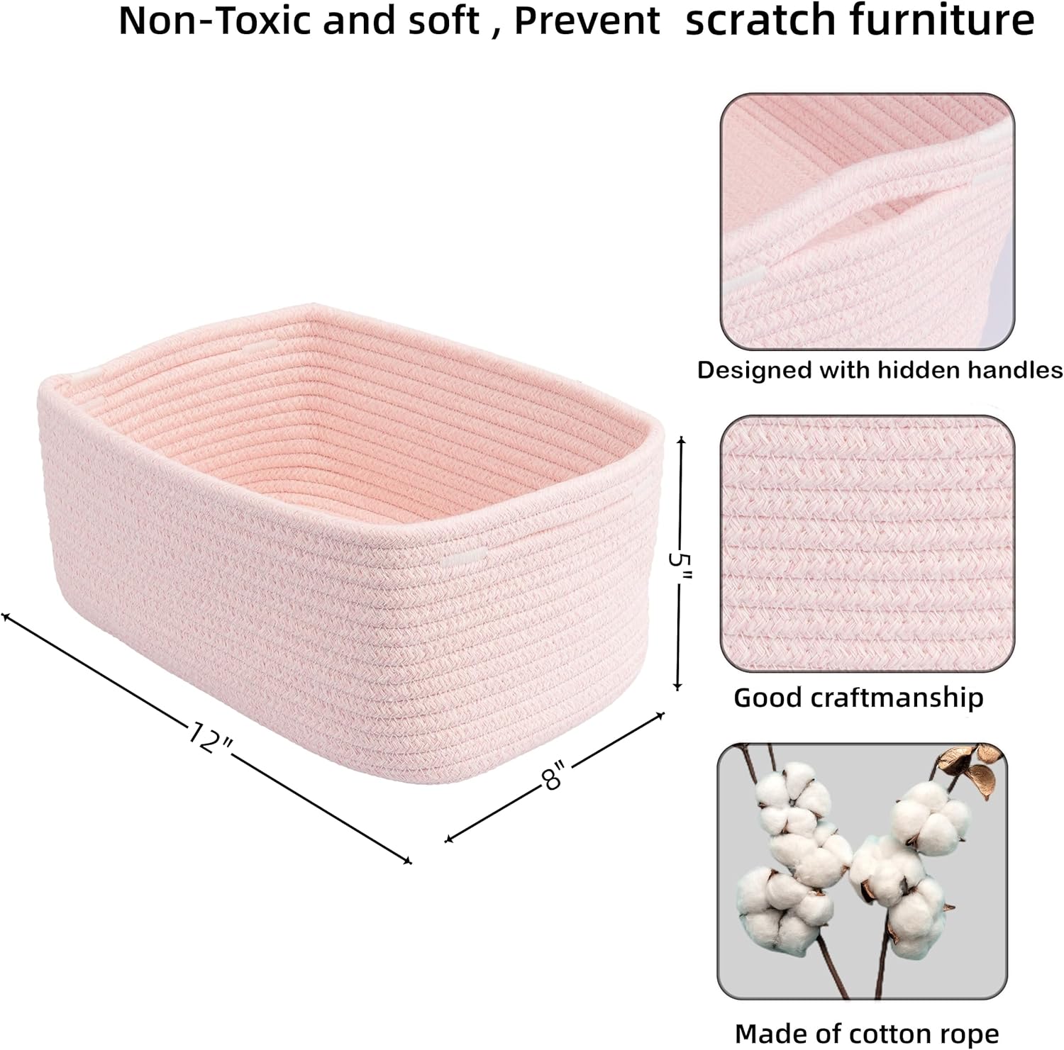 Small Woven Storage Baskets 12“X8”X5“ Decorative Rope Bins for Organizing Shelves, Closets, and Toys, Empty Gift Baskets, Cute Organizer Basket for Home and Office (pink, regular)
