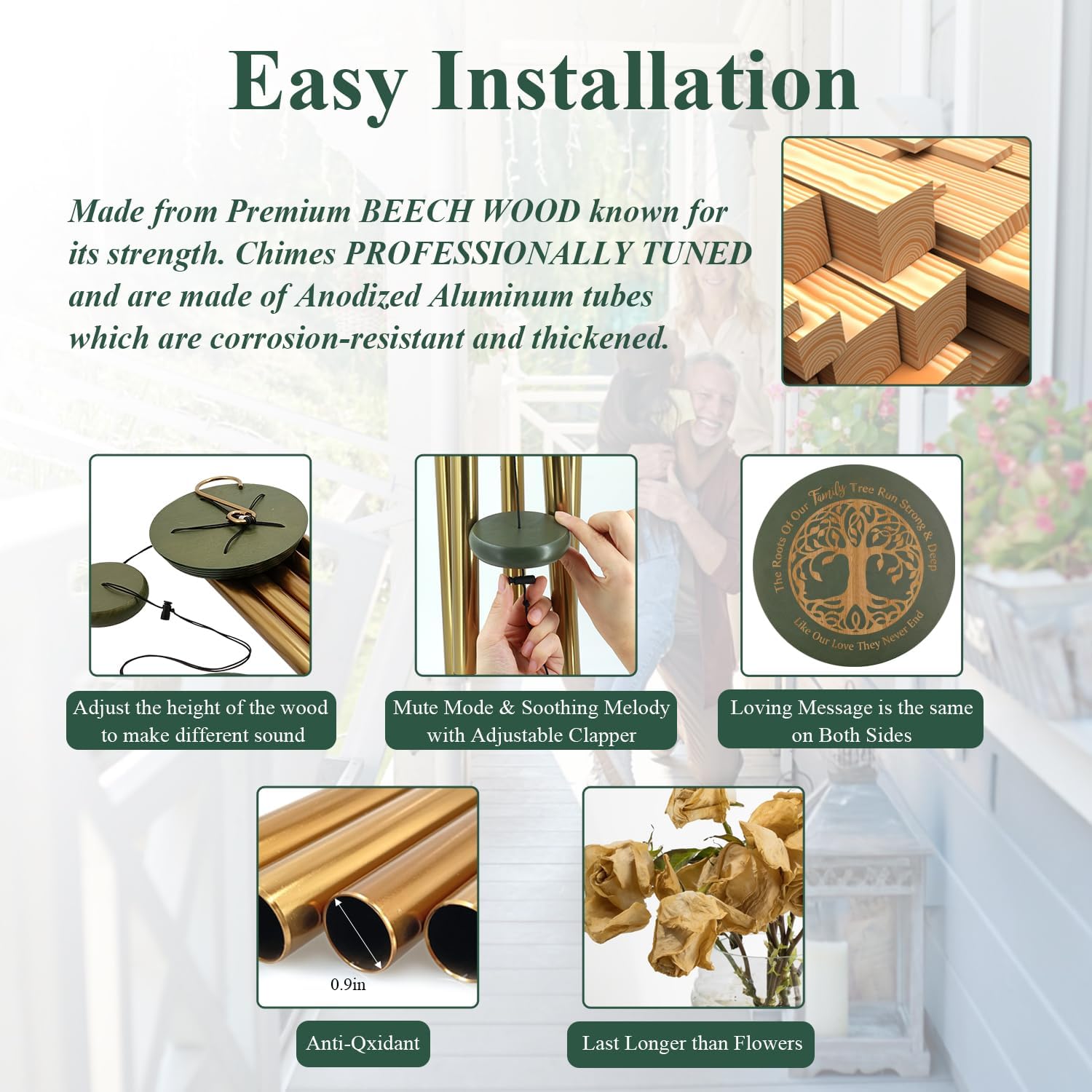 Wind Chimes for Outside, Large Outdoor Windchimes with Engraved Tree of Life, Premium Tuned Metal Chimes for Mother/Grandma, Home & Garden Decor with Soothing Tone