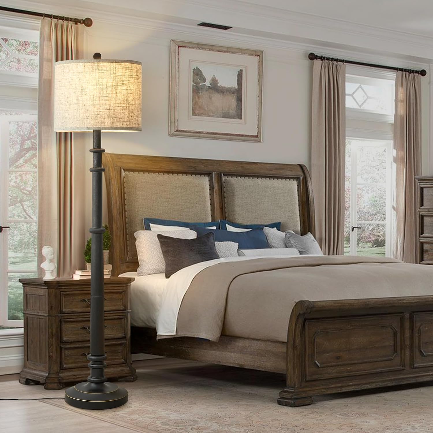 Floor Lamps for Living Room - 60" Resin Farmhouse Floor Lamp with 3 Color Temperatures - Vintage Standing Lamp Reading Light with Linen Shade Retro Tall Lamp for Bedroom Office, Black