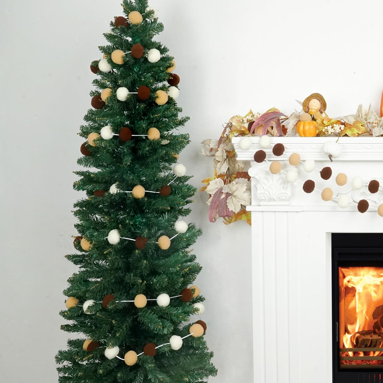 XmasExp Boho Pom Pom Garland Decorations - Large Felt Ball Garland for Mantle, Indoor Home Decor, Tree Ornaments, Kids Room and Party Hanging Decor,13 Ft.