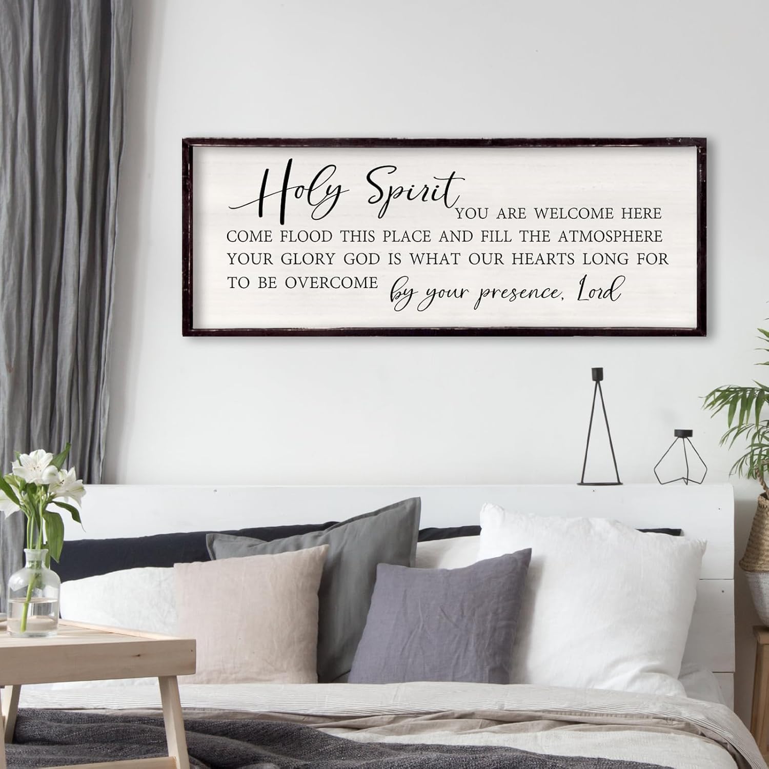Holy Spirit You are Welcome Here Wall Decor 32"×12" Quote Bible Verse Religious Christian Scripture Wall Art Sign (Black)
