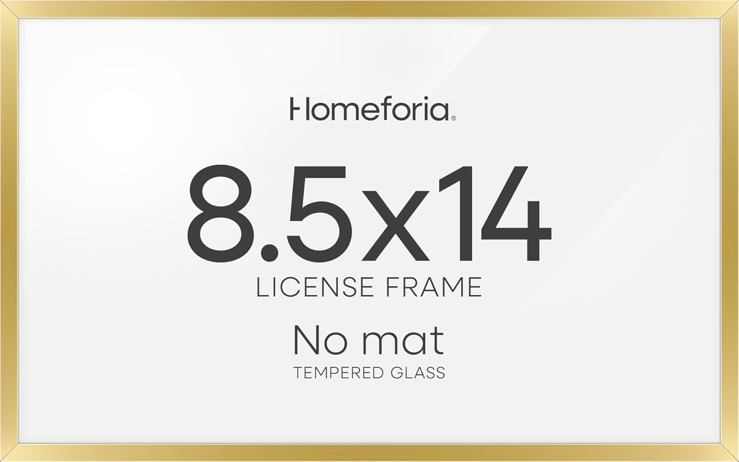 Homeforia 8.5x14 Marriage License Frame Gold, High End Metal 8.5 x 14 Marriage Certificate Frames, 8.5by14 Picture Frame for Wall & Tabletop, 8.5 by 14 Photo Frames, Tempered Glass, Wall Kit, Set of 1