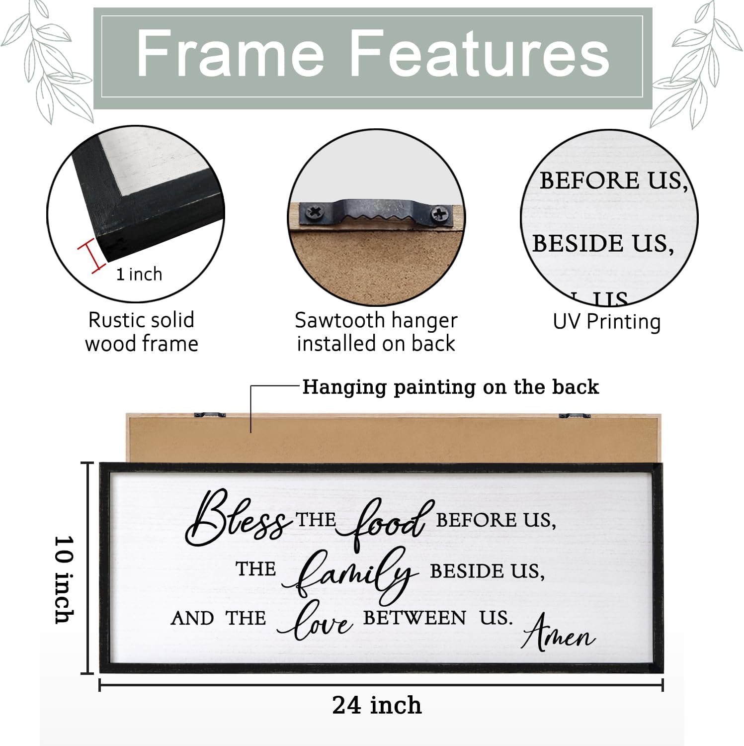 Bless the Food Before Us Wall Decor Art 24"X10" for Dining Room Kitchen Wall Wooden Framed Sign (Black)