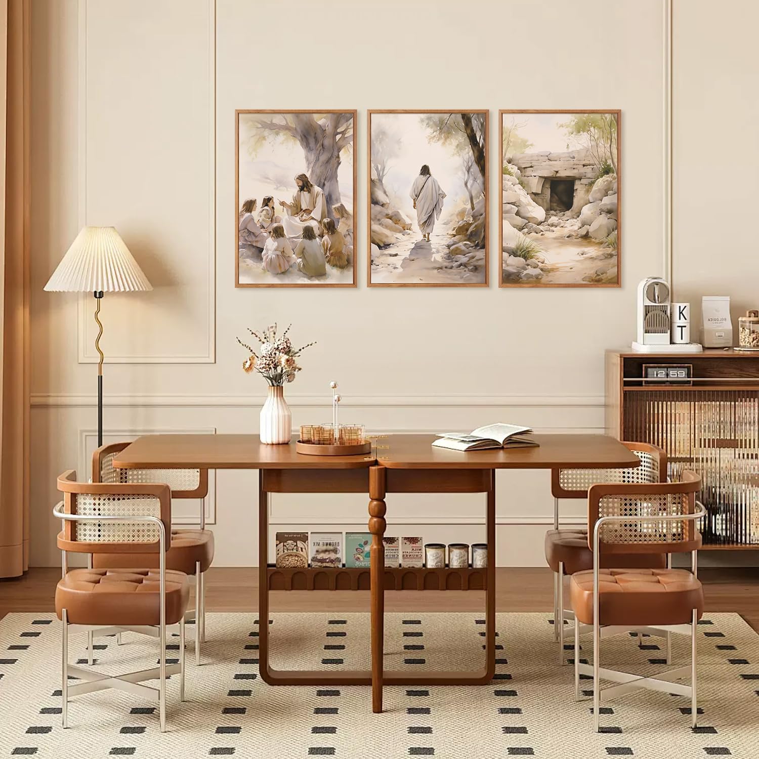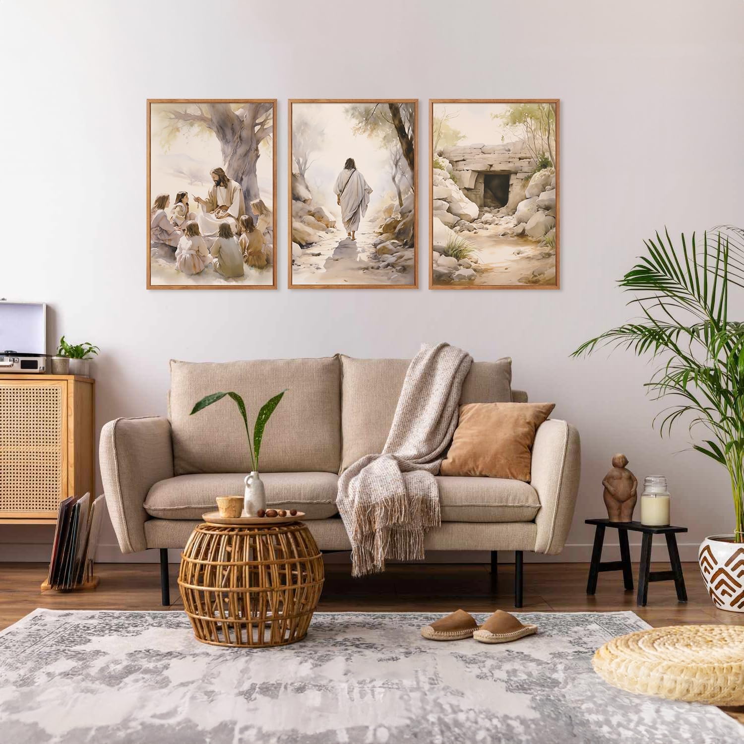 Aurlan Jesus Teaching Children Jesus on Path Framed Empty Tomb Bible Stories Wall Art(16"x24"), 3PCS Boho Christian Easter Scripture Gifts Canvas Artwork, Large Spiritual Religious Faith Decor Prints for Office Home