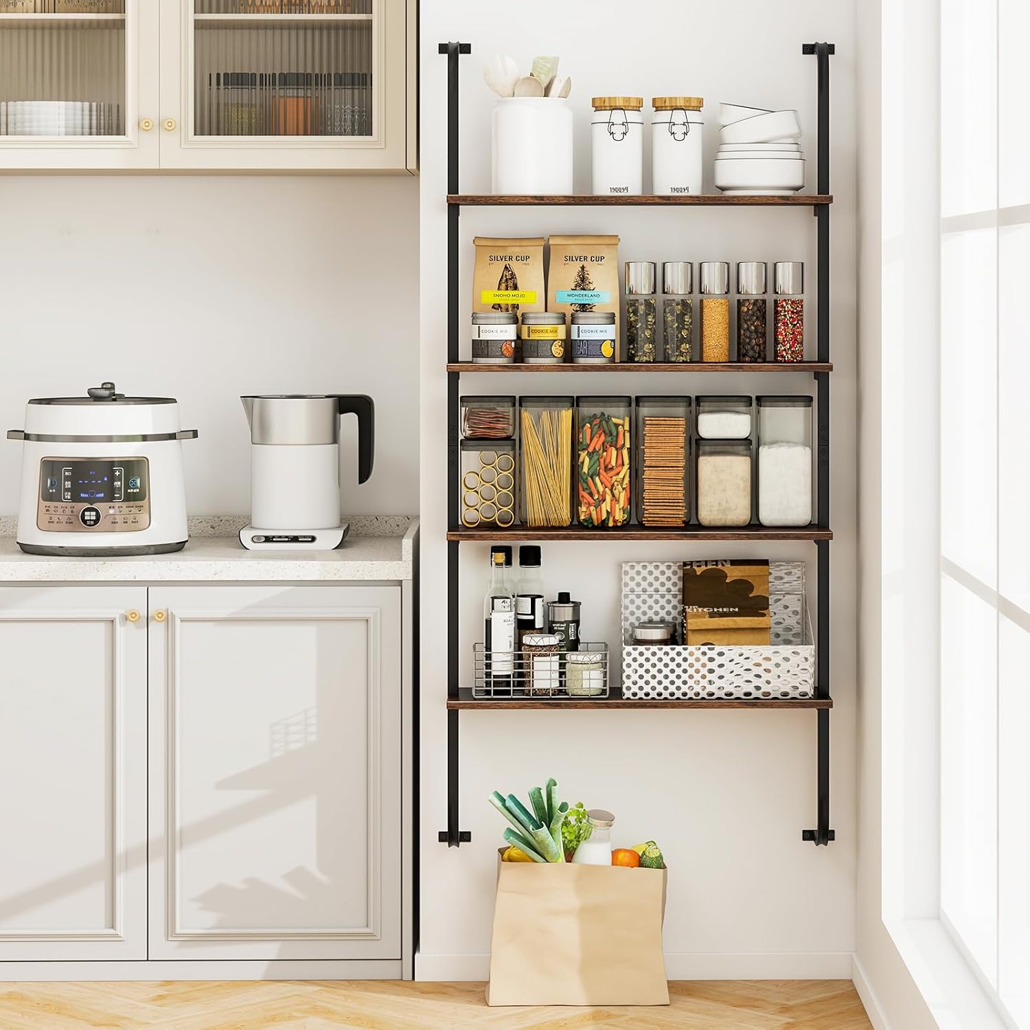 - [Sturdy and Secure Installation]: The ladder shelves come with expansion screws for wall mounting, ensuring stability and safety. Featuring thickened boards and a robust metal frame, each shelf can support up to 45 lbs, providing a secure hold for your belongings.