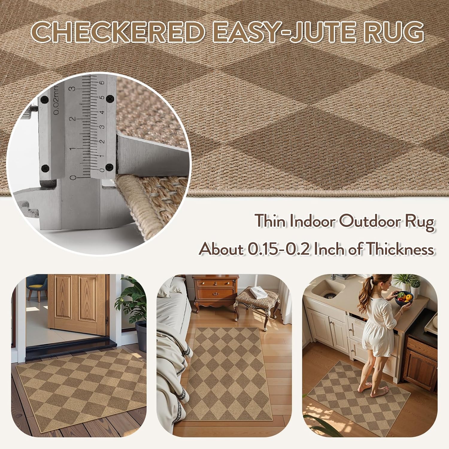 Lahome Checkered Easy Jute Rug, 2x3 Entryway Rug Indoor Outdoor Front Door Mat, Farmhouse Neutral Non Slip Non Shedding Washable Kitchen Mats for Floor Foyer