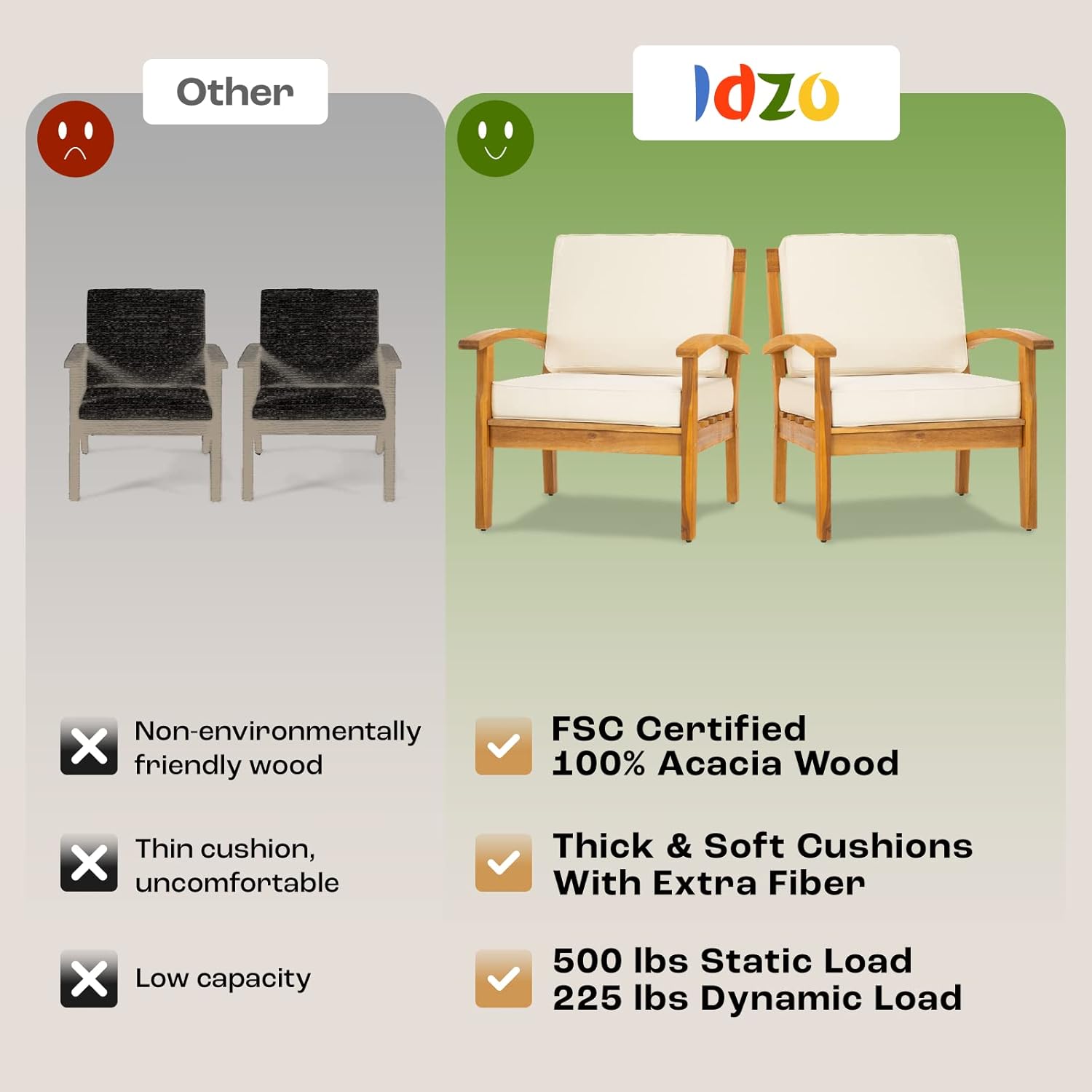 - 500LBS HEAVY DUTY OUTDOOR CLUB CHAIRS: Our wood outdoor chair set boasts a robust frame, ensuring protection; Each chair is tested to hold 500lbs and withstand sudden impacts of 225lbs, ensuring durability for outdoor use