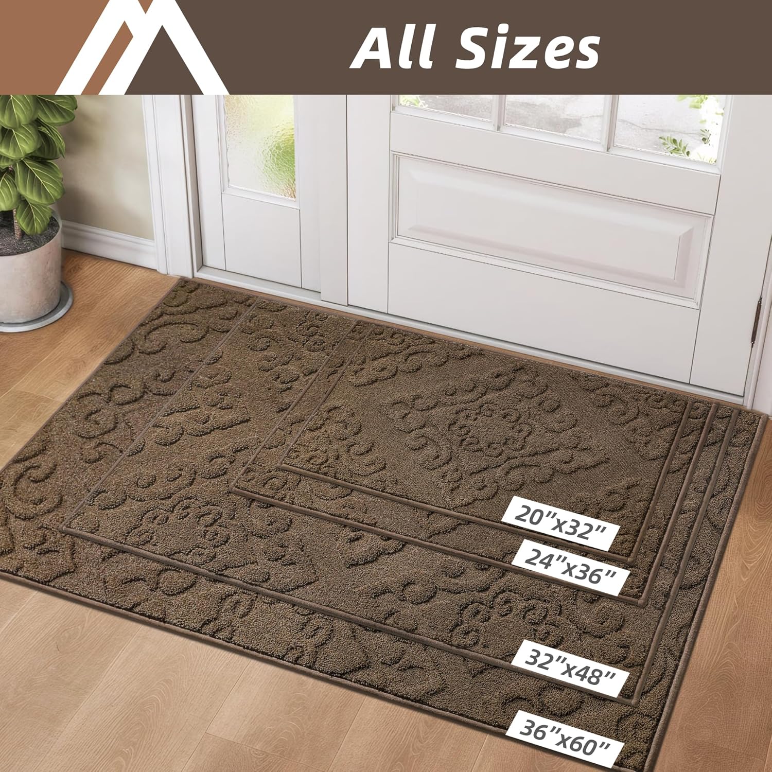 COSY HOMEER-Door-Mat-Non-Slip-Entryway-Rug 32”x48” Absorbent Welcome Mats Washable Dirt Trapper Door Mat Entrance Floor Mats for Front Back Doormats and Wet Shoes,Brown
