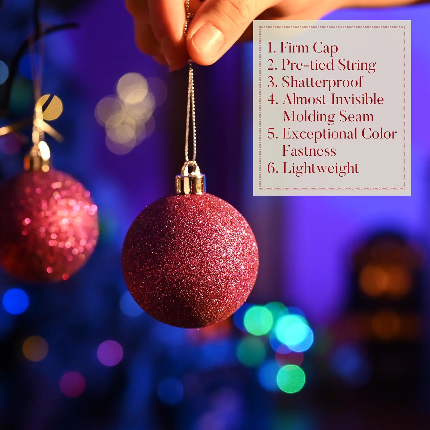 - 【Package and Size】This ornament ball set include 50pcs Christmas ornaments measuring 2 inches in diameter, featuring seamless connections for a polished look