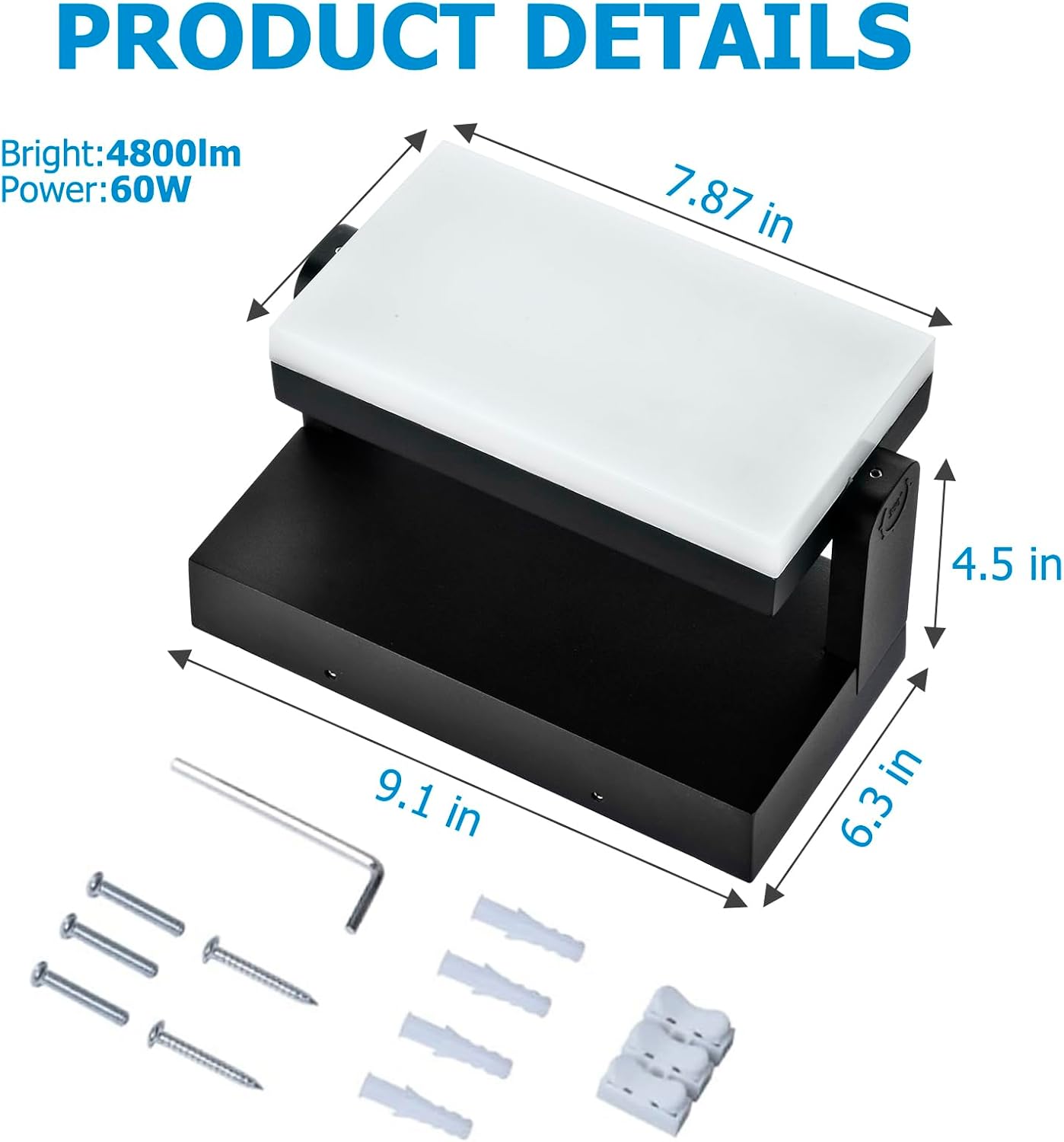 60W LED Outdoor Wall Lights with 360°Rotation, Flood Lights Outdoor 5000K 4000K 3000K 3 Colors Changeable,Outside Sconce Security Lights for Garage Barn Front Porch