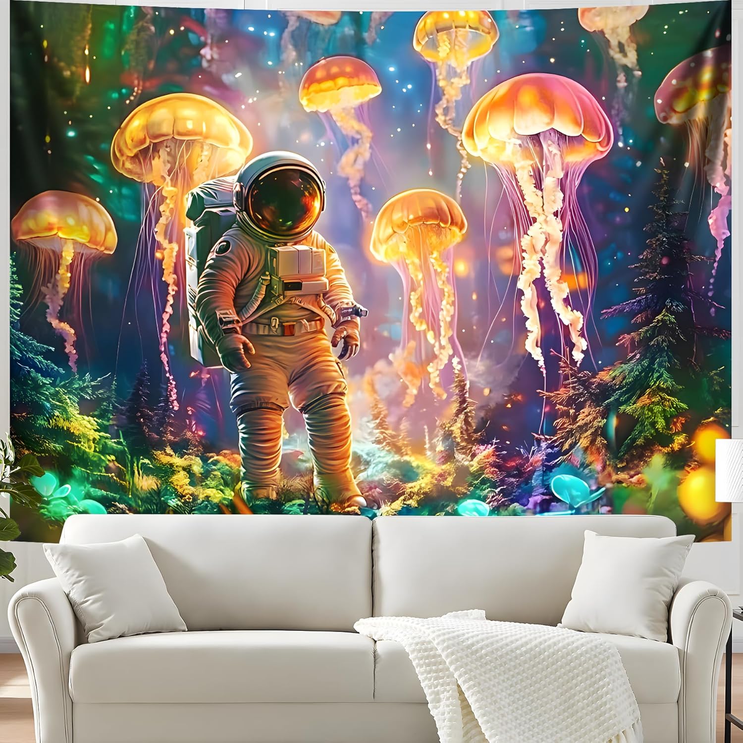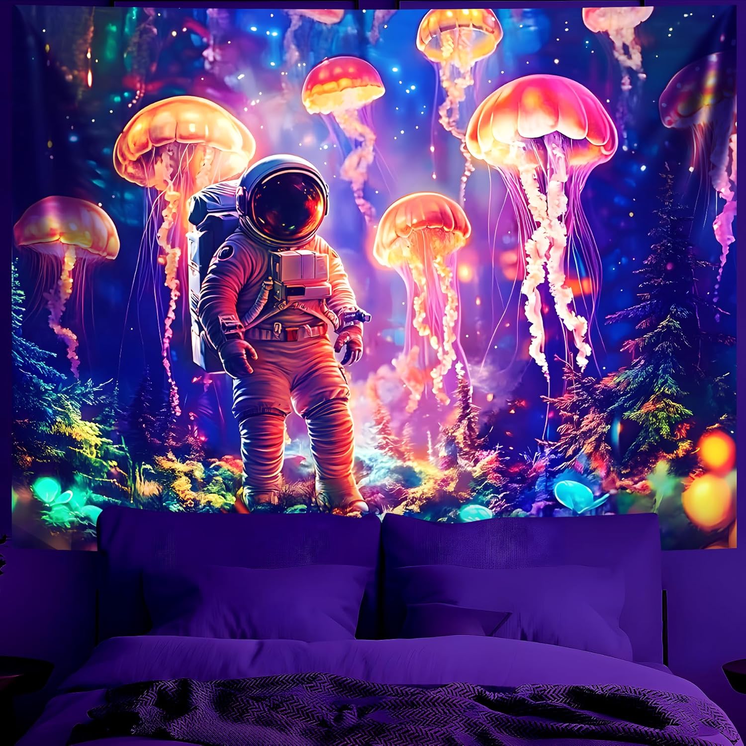 BVBOX Astronaut Blacklight Tapestry 79"x59", UV Reactive Astronaut Jellyfish Underwater World Glow in Dark Tapestries, Black Light Neon Upright Poster Wall Hanging Backdrop Decor for Bedroom Living Room