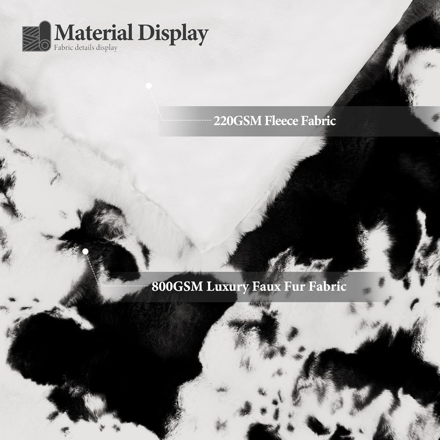 Touchat Cow Print Blanket for Couch, Faux Fur Throw Blanket, Super Heavy Warm Cozy Blankets for Bed Sofa, Bubble Plush Fuzzy Soft Mink Blanket for Living Room Bedroom, Cow Black