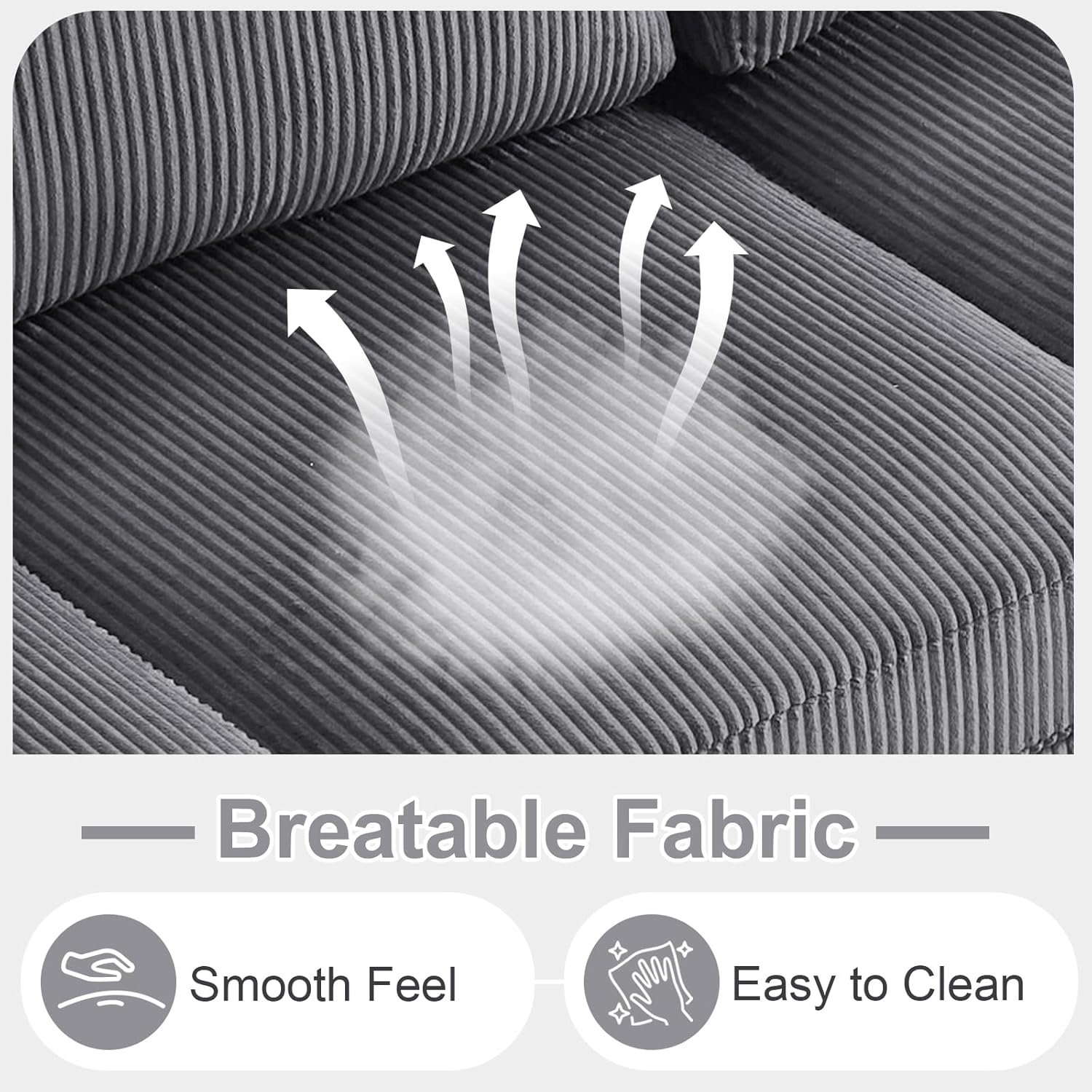 - SOFT & COMFORTABLE - When seated on the couch, you will experience the support of the high-resilience sponge in the seat and back. Occasionally, you can take a nap on the chaise. Covered with breathable fabric, this four-seat sofa offers physical and mental comfort.