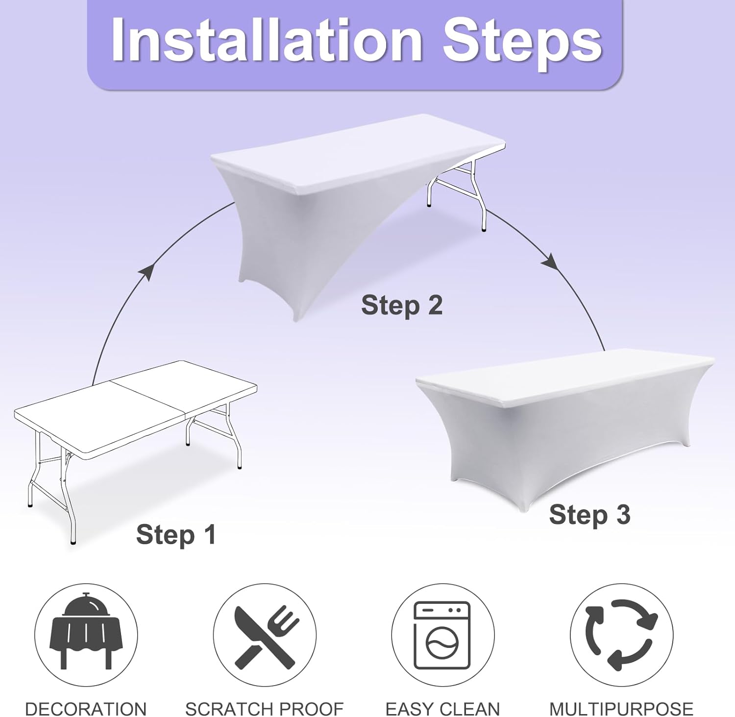 - 2.Why This Cover?: This table cover made from 90% high-quality polyester and 10% spandex material. So that it is Durable, Long-Lasting, Wrinkle-Resistant. The strong elastic hem ensures a tight grip on your table, preventing slipping or sliding, even during active use. It’s built to last through many times washes and uses. Whether it’s a family dinner, wedding, birthday party, holiday celebration, or outdoor picnic, this tablecloth adds a touch of elegance to any setting.