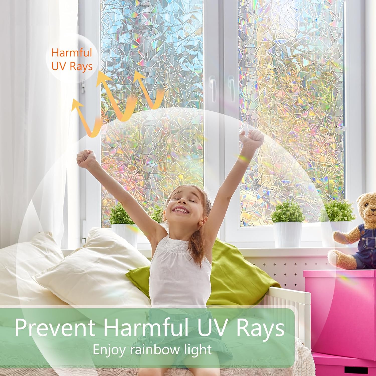 HIDBEA Window Privacy Film Static Clings, Rainbow Window Film, 3D Decals Non-Adhesive Window Vinyl Film for Home Door, 23.6 Inch x 13.1 Feet