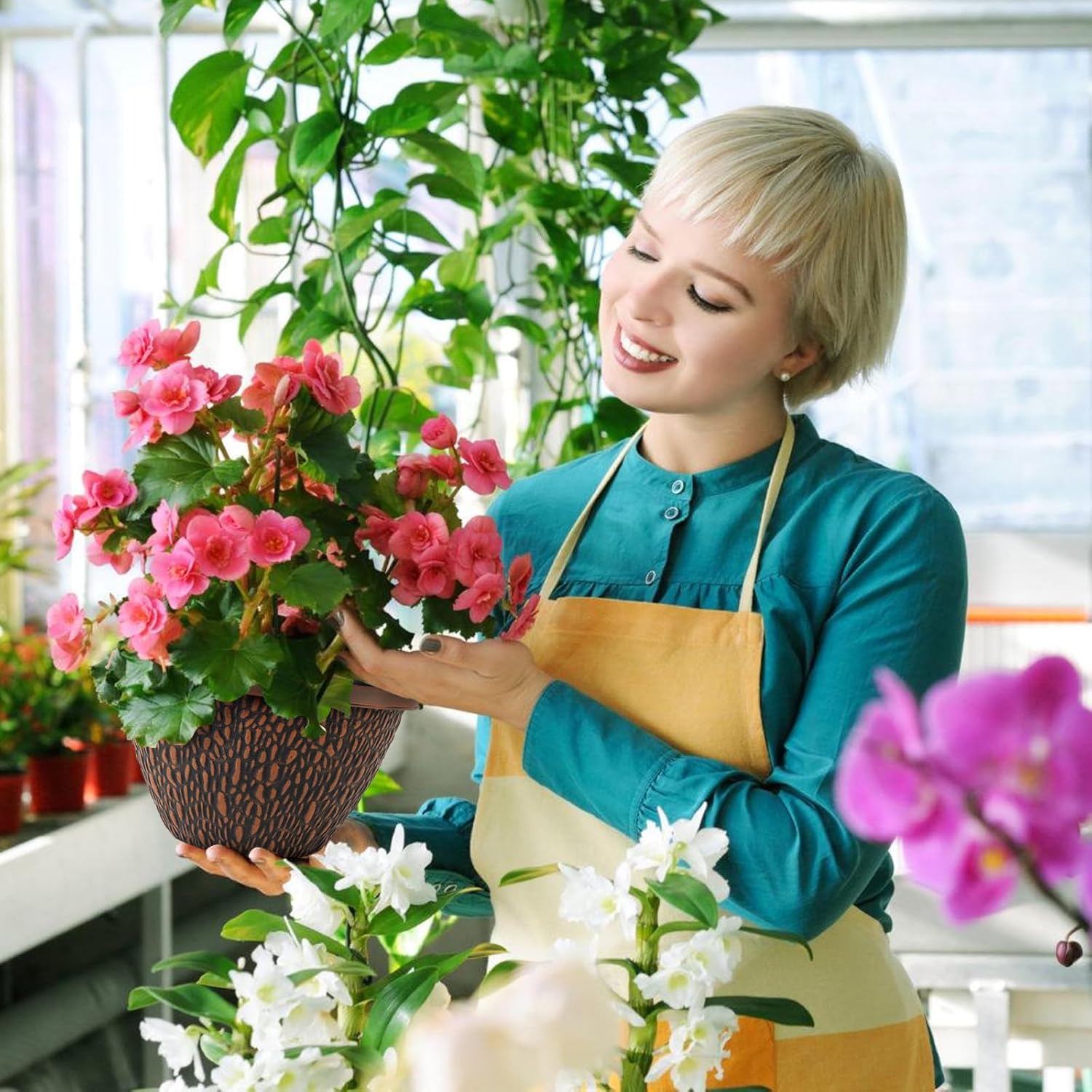 - 【Garden/Home Plant Decor】 Dark brown planting pots with colorful plants or flowers can be a great decoration for your windowsill, bookshelf, desk, small balcony, courtyard, etc. Planters for indoor plants are light and flexible, easy to move, convenient for frequent adjustment of placement, or seasonal plant replacement. In addition, Nooulap planters are available in 8/10/12/16 inches.
