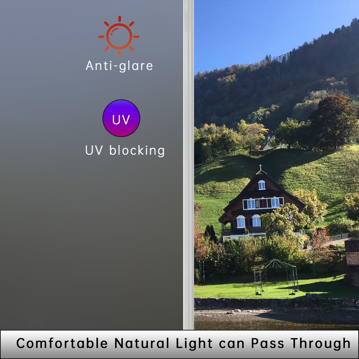 - [Window film privacy day and night]; Frosted window privacy film is used for glass windows, which can block prying eyes and dog barking, can effectively block unwanted sight from the outside, ensure that your private space is well protected, while still allowing soft natural light to enter, vinyl window film simple decoration makes life easier and better, glass doors, bathrooms, bathroom windows, home, kitchen, french doors, front door side windows, living room, meeting room, office, living room, house, patio door, bedroom, etc., window privacy screen, sliding door, Create a more comfortable living space for you and your family.
