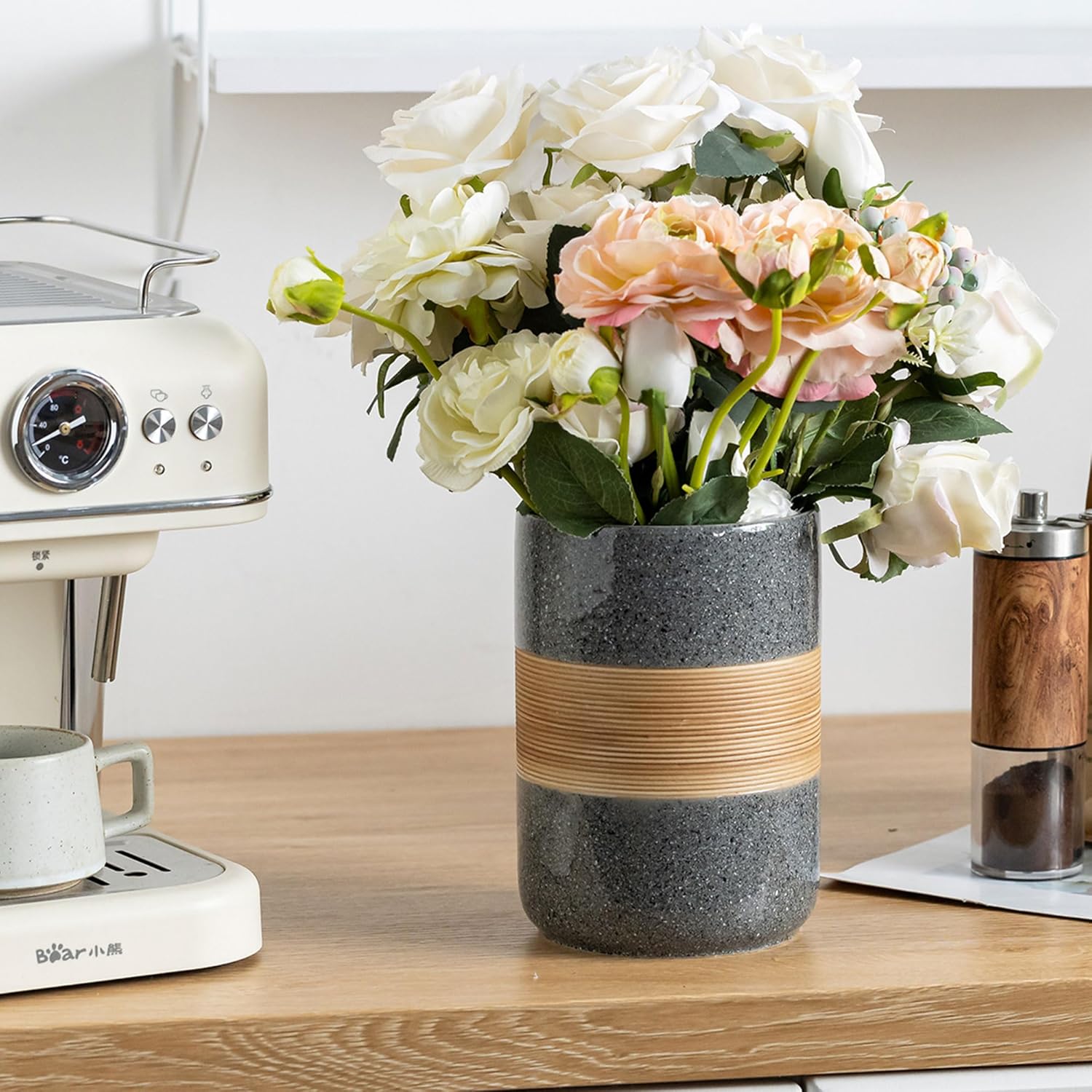 Large Storage Containers with Lids, Ceramic Coffee Container Kitchen Food Storage Cookie Jars with Airtight Lid for Spice Sugar Tea Bag, Stackable Decorative Jars for Counter, Grey & 61oz