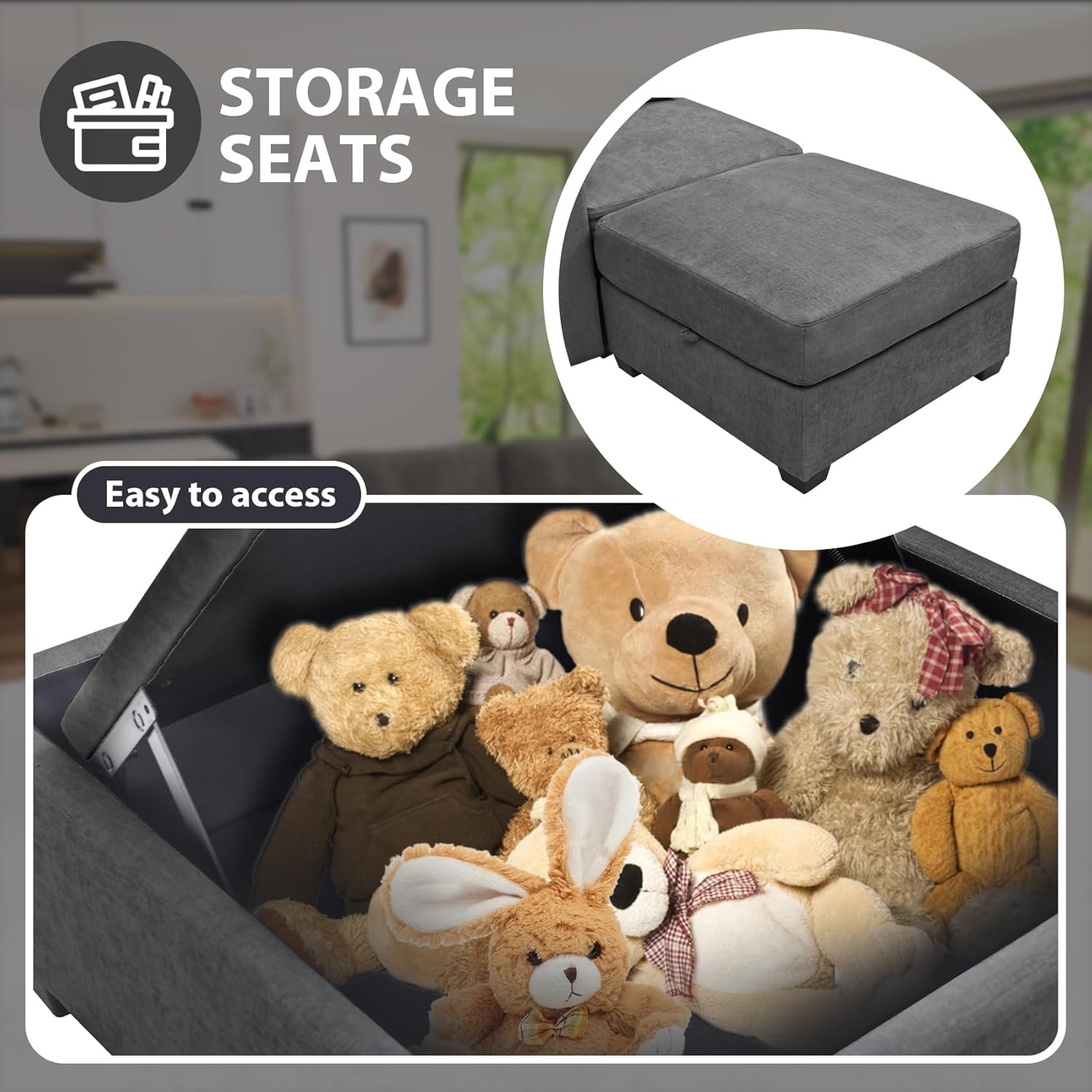 mestyl Modular Sectional Sofa Convertible Sofa Couch Set with Storage for Living Room, Modern 7 Seater Modular Sectional Couch with 2 Movable Ottoman (Grey)