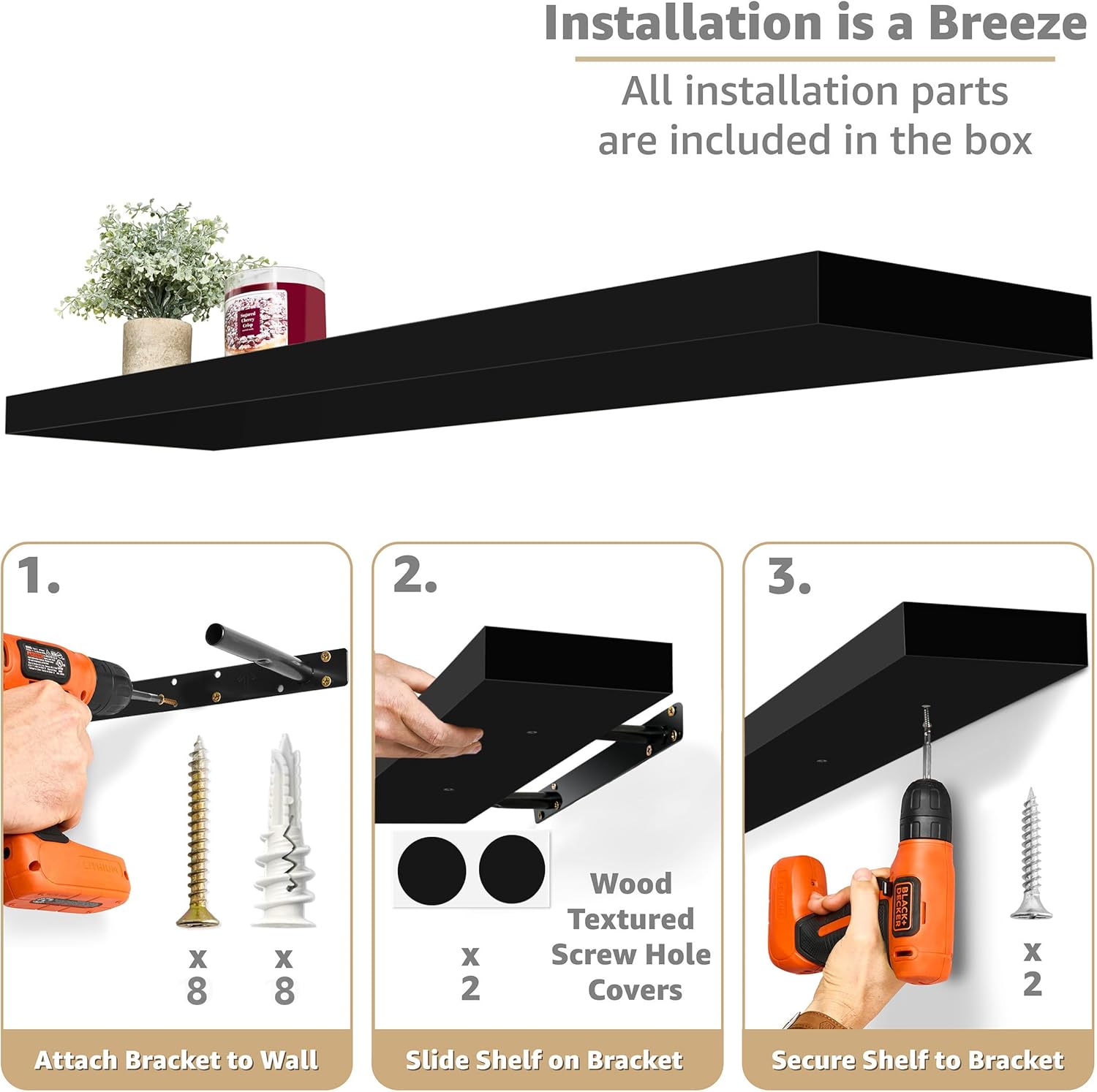 Sorbus Floating Shelves for Wall - 35 Inch Long Bathroom Shelves, Wall Decor for Bedroom, Kitchen, Living Room & Book Storage - Mounted Floating Shelf with Invisible Brackets (Black, 3 Pack)