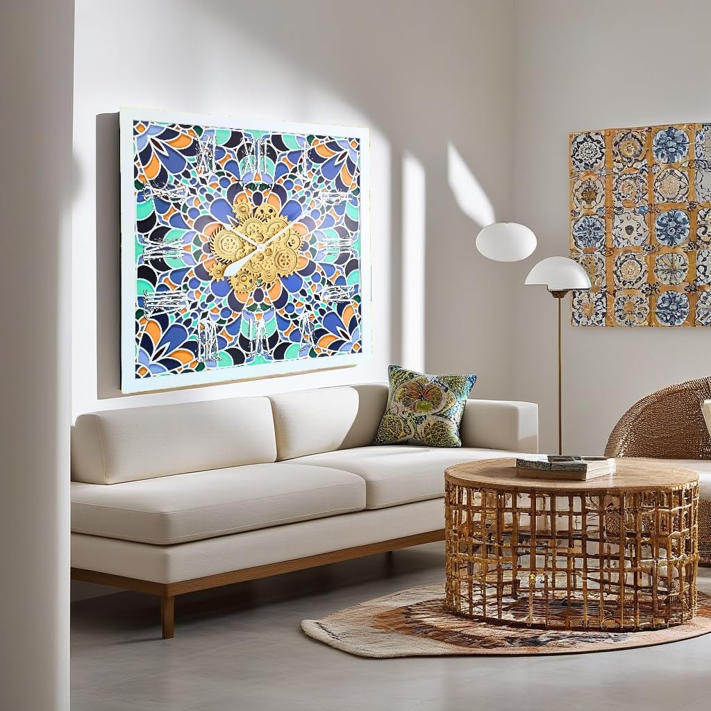 The Gears Clock Wall Clock Italy Collection with Moving Gears (Tramonti, 36 inch Square)