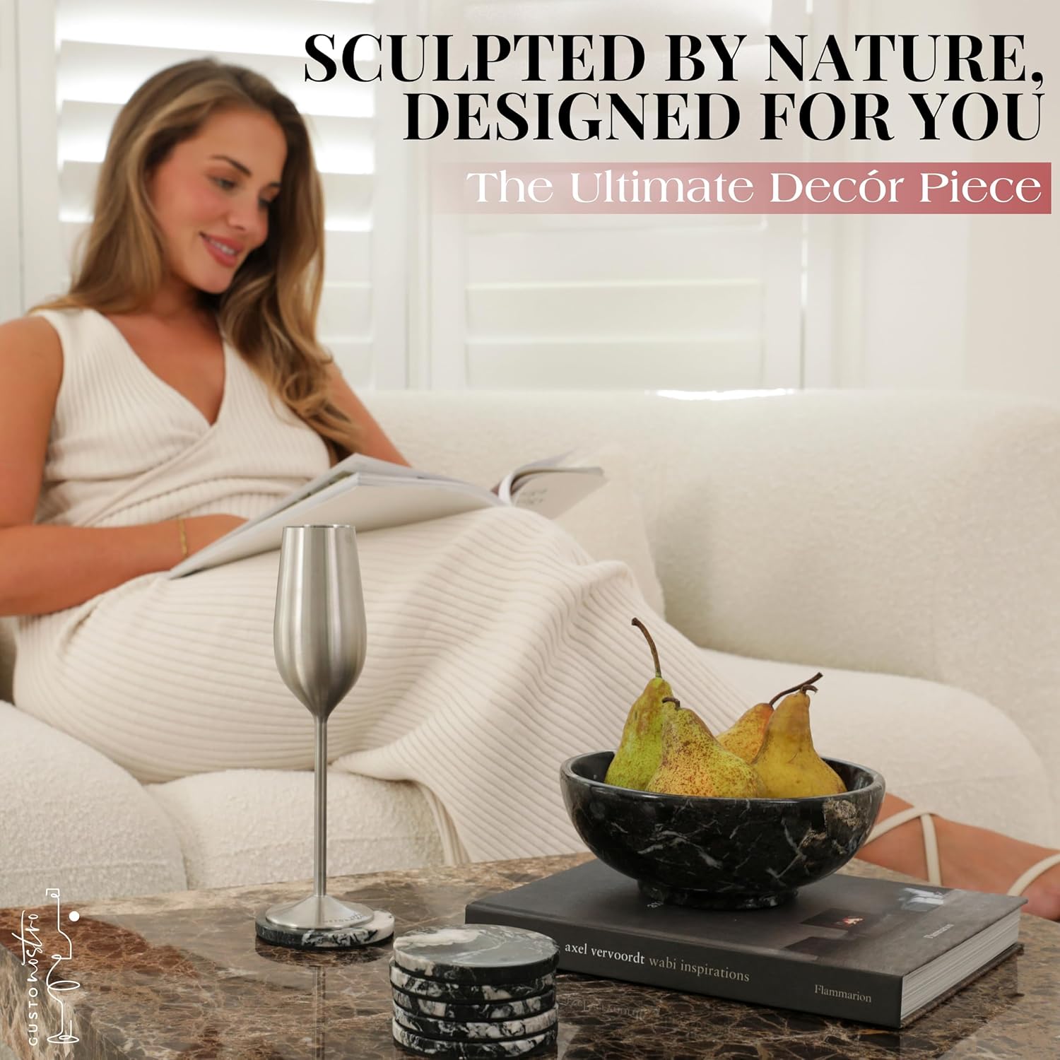 - Looking for Something Bold Yet Refined? Our black marble bowl makes a sculptural statement in any room, whether you're styling a shelf, kitchen countertop, or finishing your coffee table, it’s the element that ties everything together