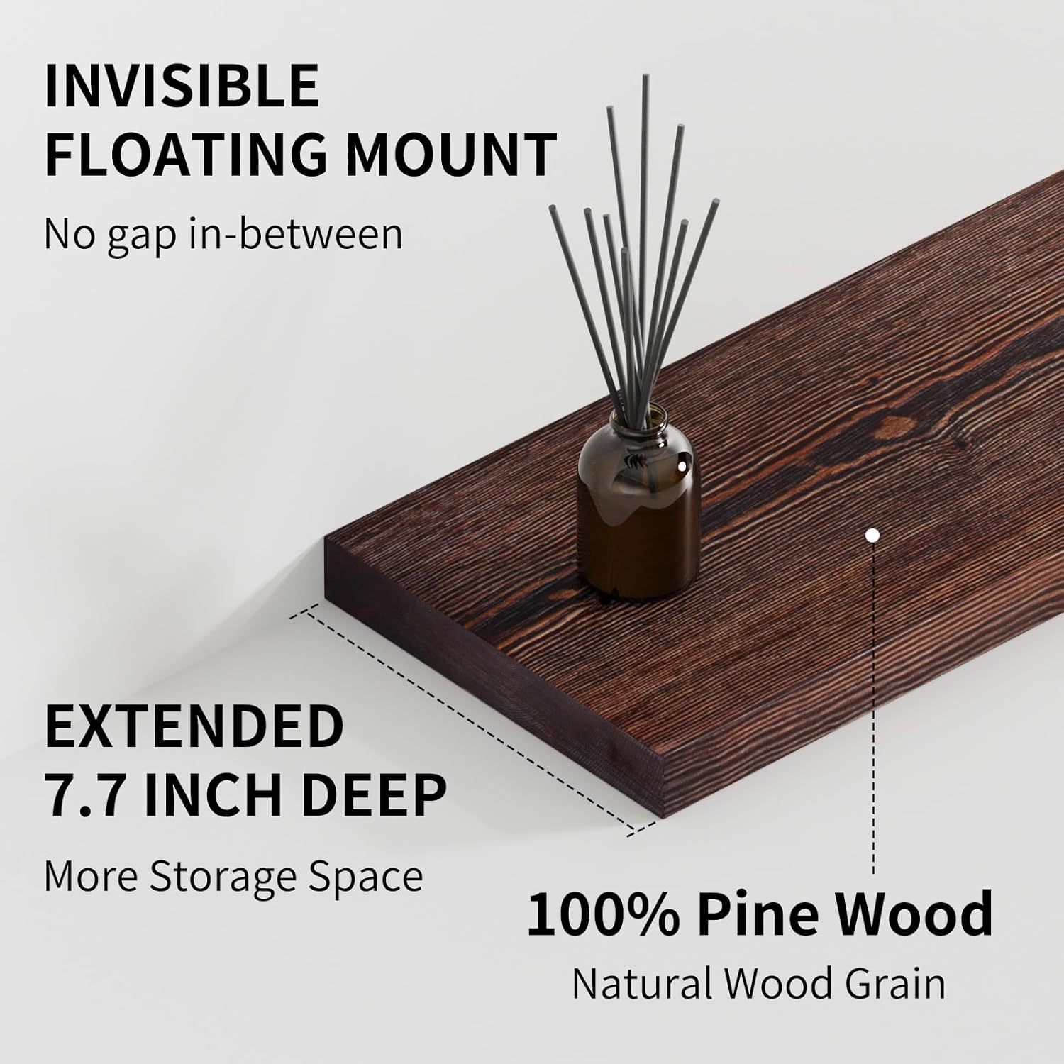 - Deep Floating Shelves: Crafted with extra-wide (8 inches) and thick (1.4 inches) wood, they are deeper and sturdier than regular floating shelves; Perfect for displaying books, plants, and decorative items, they make your space more organized